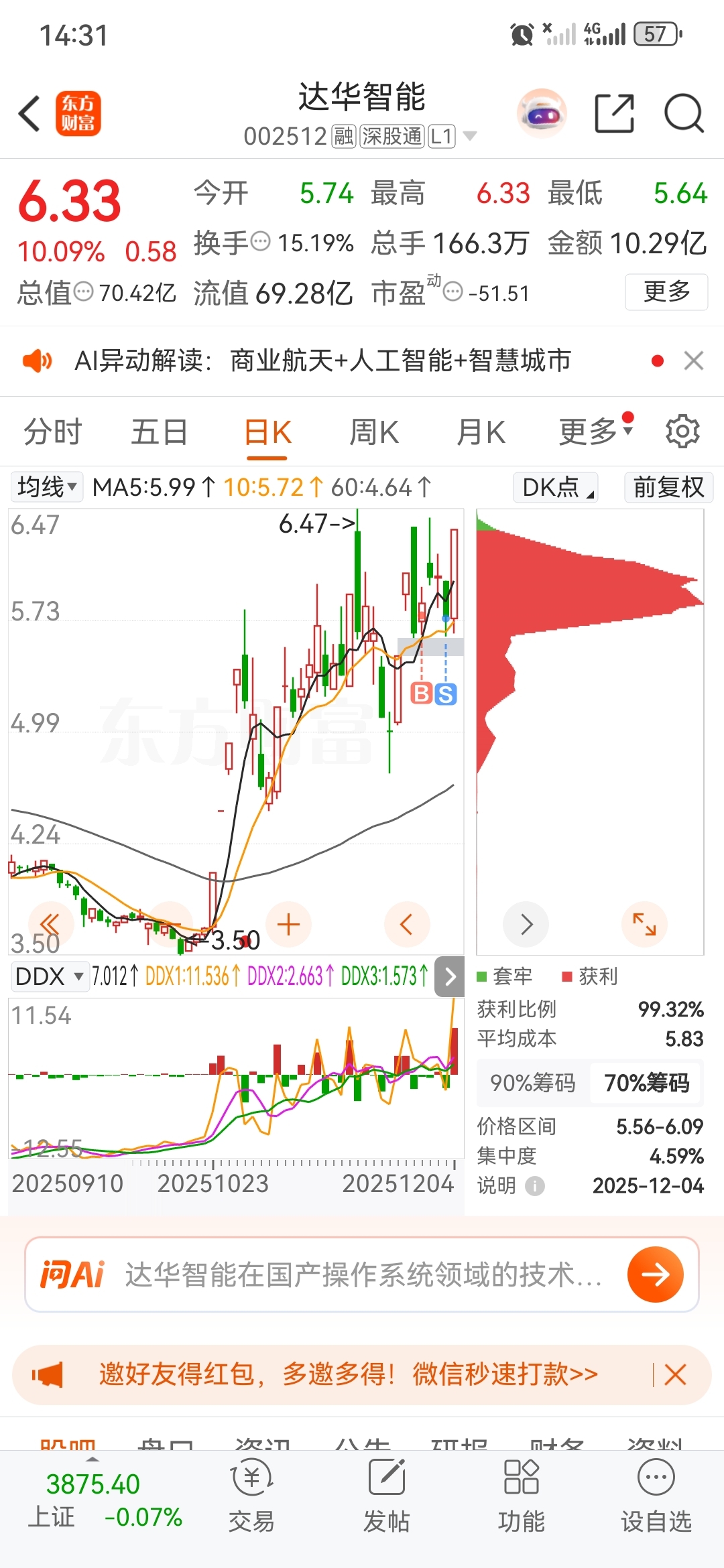 $达华智能(SZ002512)$ 昨天刚卖就涨停