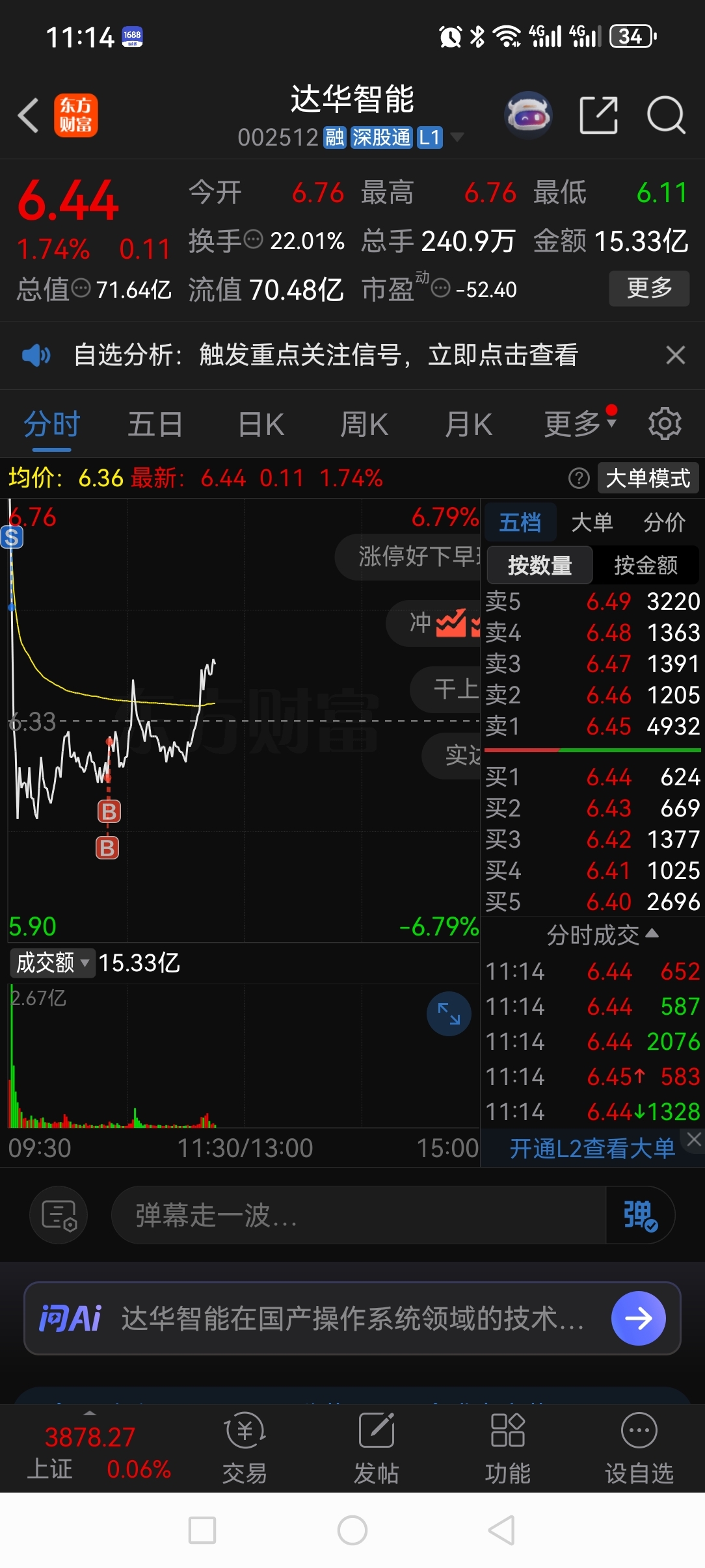$达华智能(SZ002512)$ 四大砸盘王都砸不死。要高看一眼,果断接回来。空转多