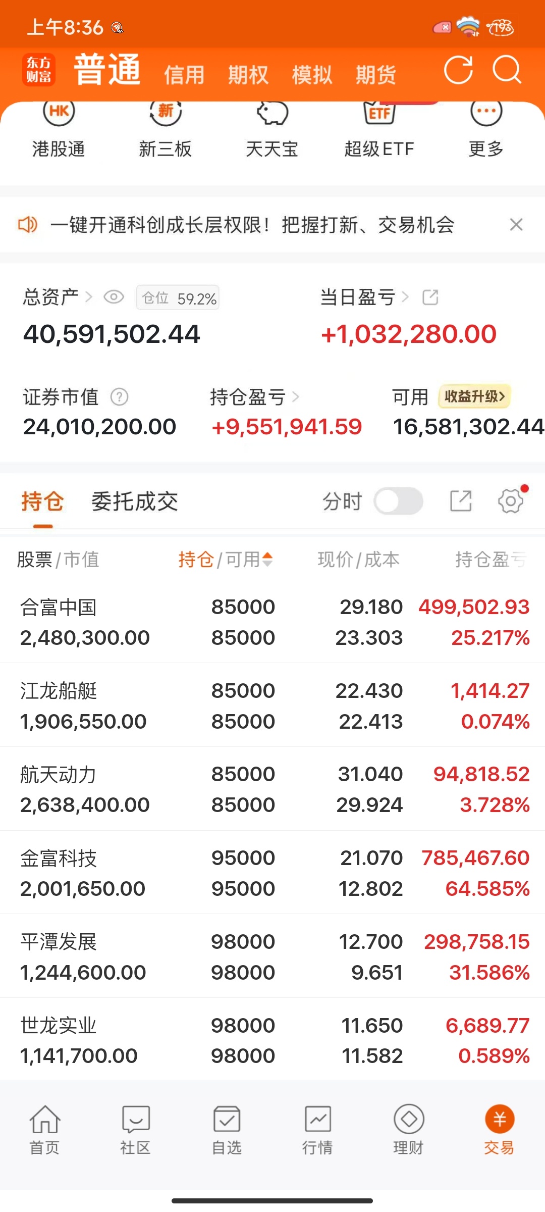 今日持仓:世龙实业这个位置还可以在坚持一下的