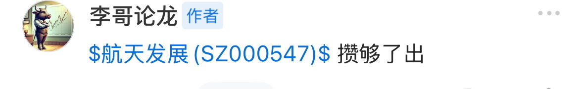 收盘今日进了航天发展今天出了吃了50斤,赚够了先落袋为安吧以上仅个人观点、不构成