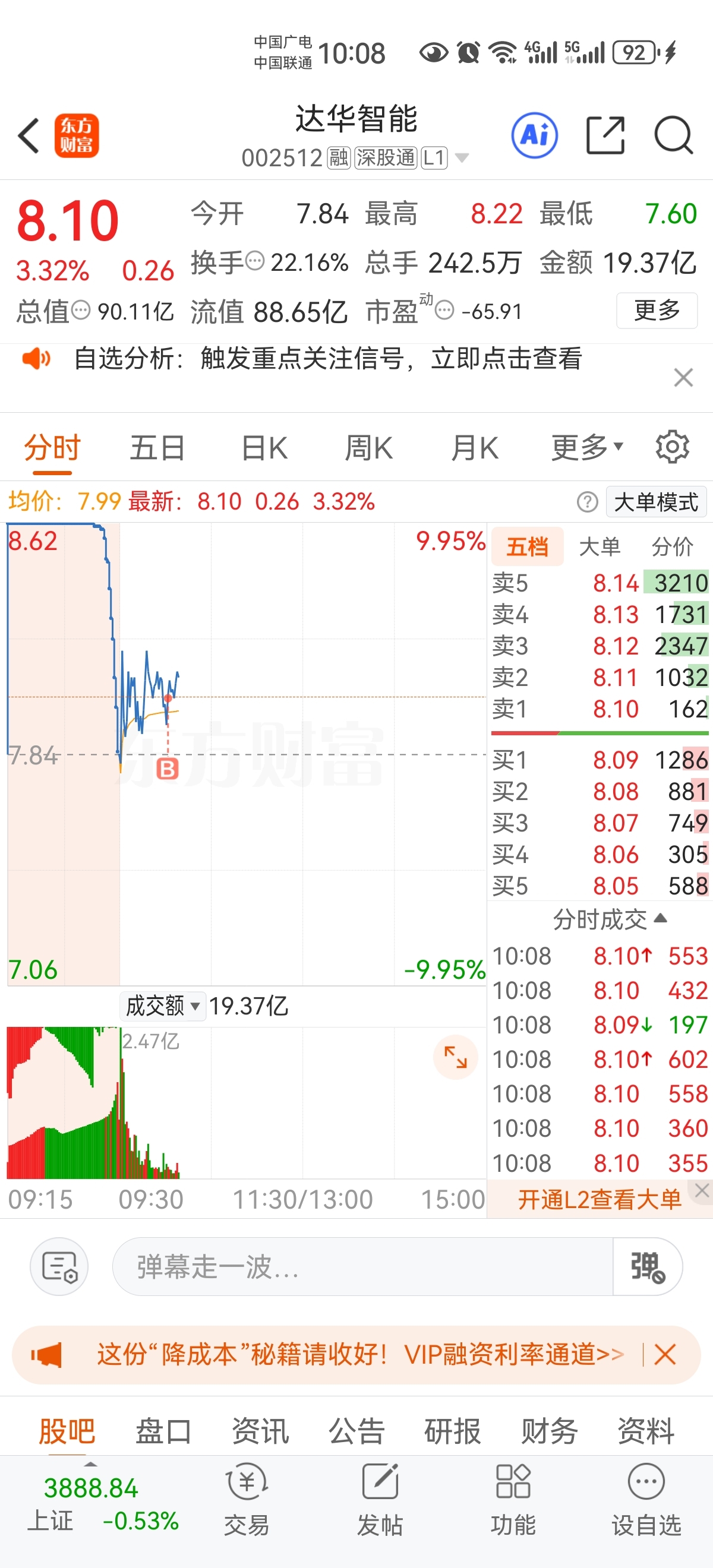 $达华智能(SZ002512)$ 很多人说新闸路现在是最有格局的资金,估计今天还是没有走,我也和新闸路一起格局。