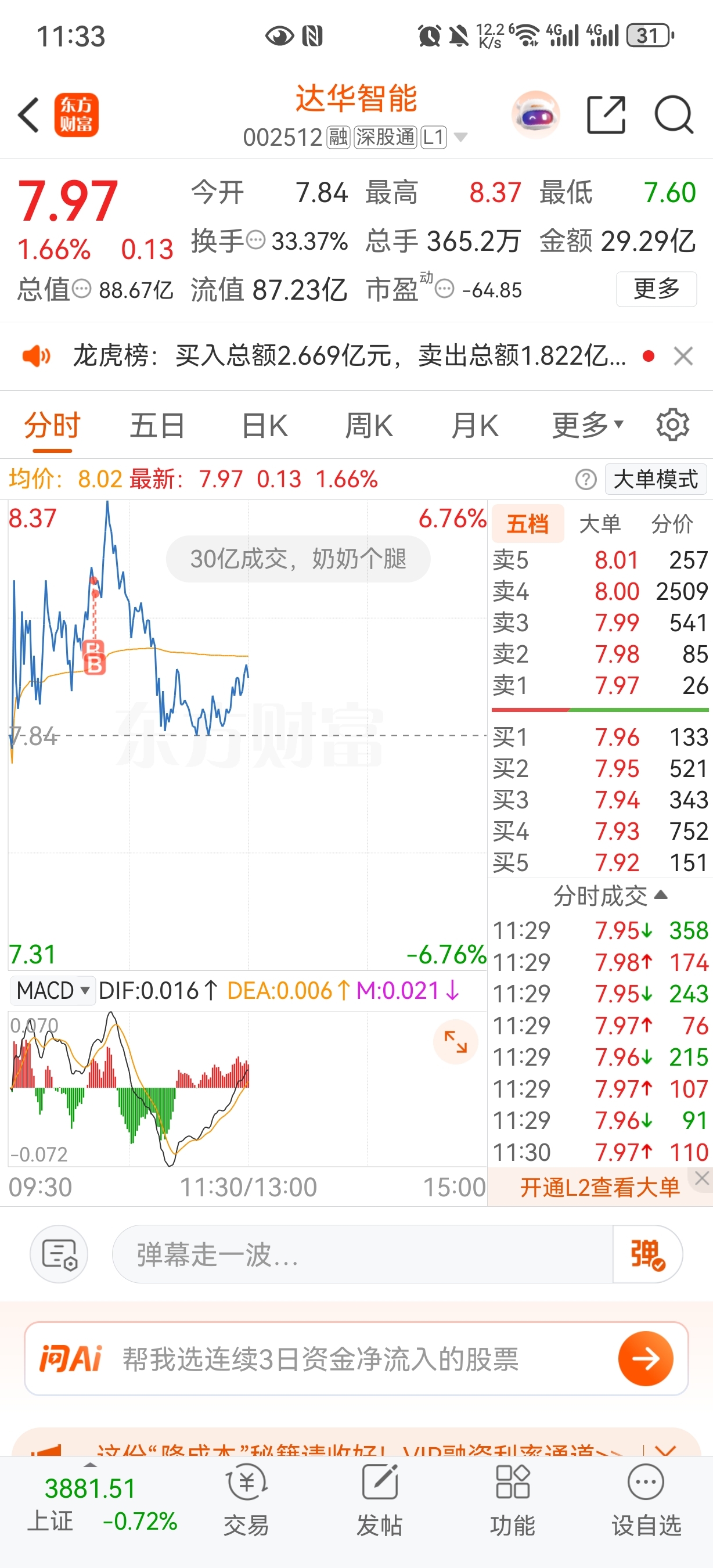 $达华智能(SZ002512)$ 沃糙,盘中富贵