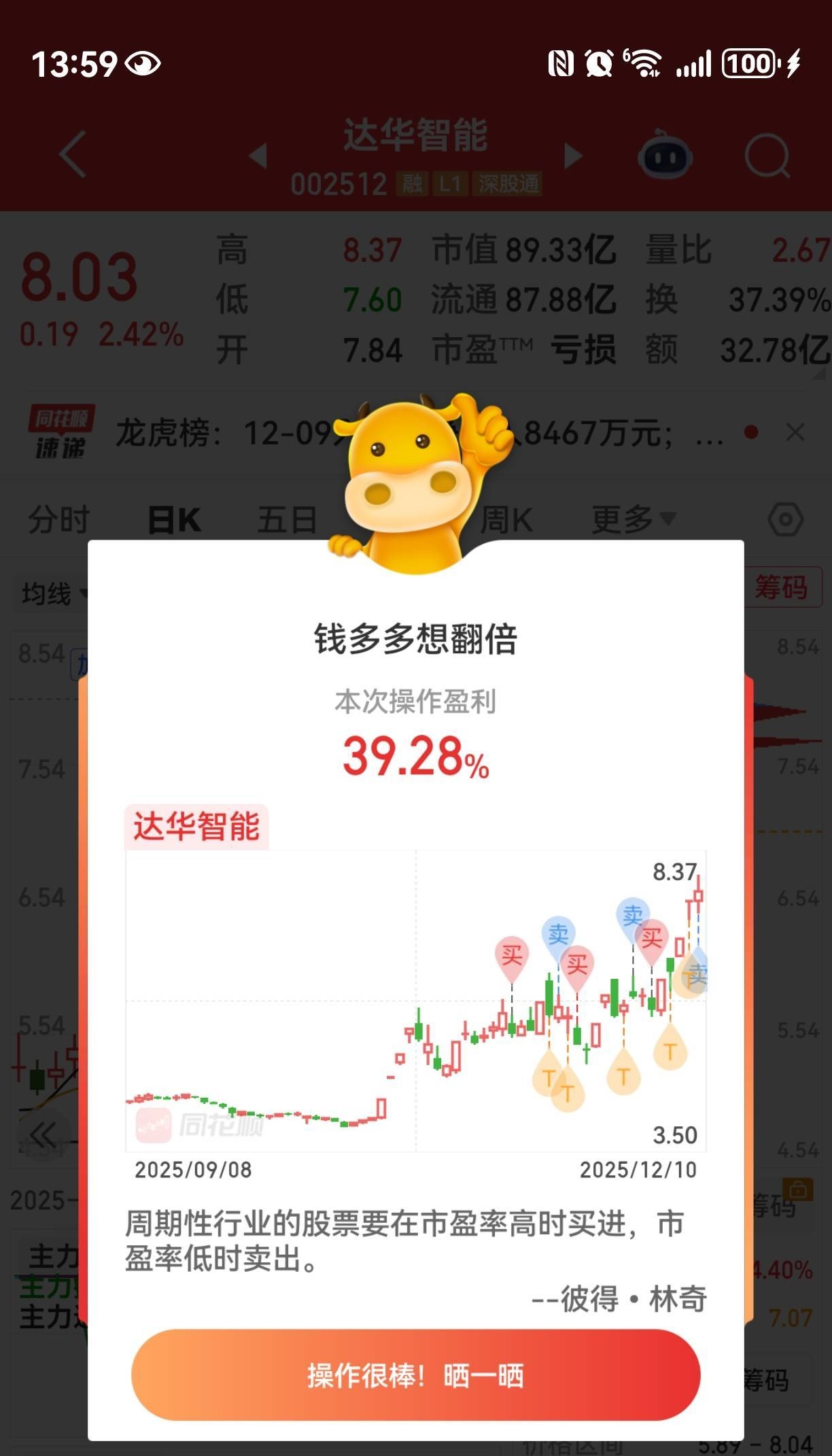 感谢达华主力大哥。进出三次。最后一次吃的最多,知足了!