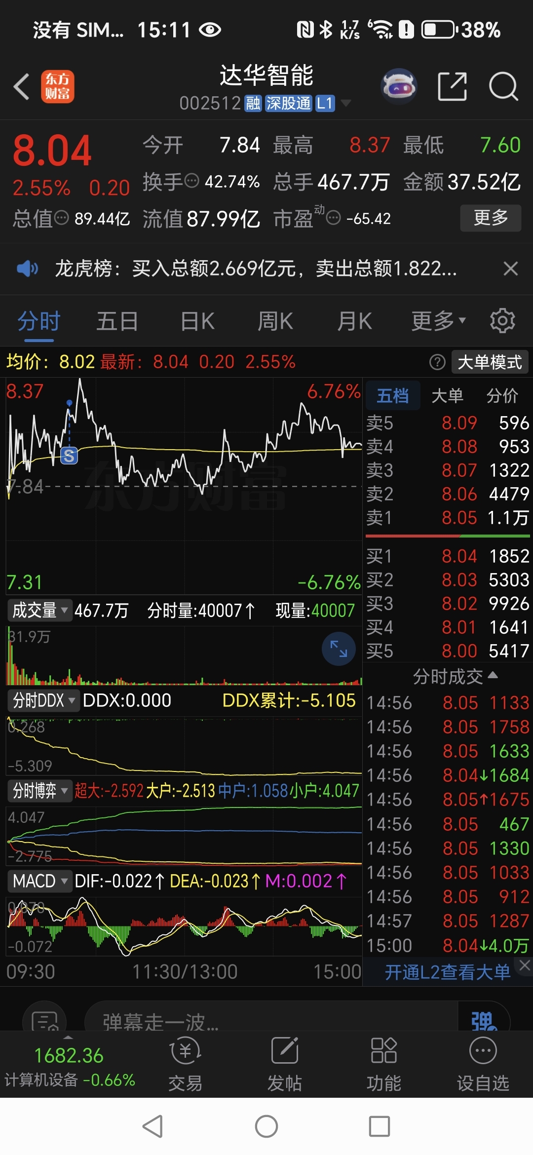 $达华智能(SZ002512)$ 清仓了,一股不留!好股是好股,高位滞涨也好,出货也罢!想要来后市涨得更好更健康,很有必要调整了!!!也不用调太多,22个点很有必要,我还会回来的
