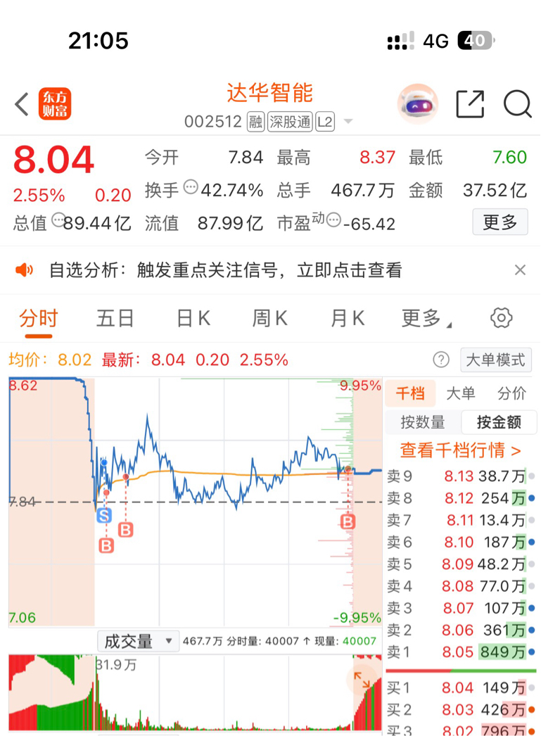 $达华智能(SZ002512)$ 别人恐慌我加仓 明天的事明天再说