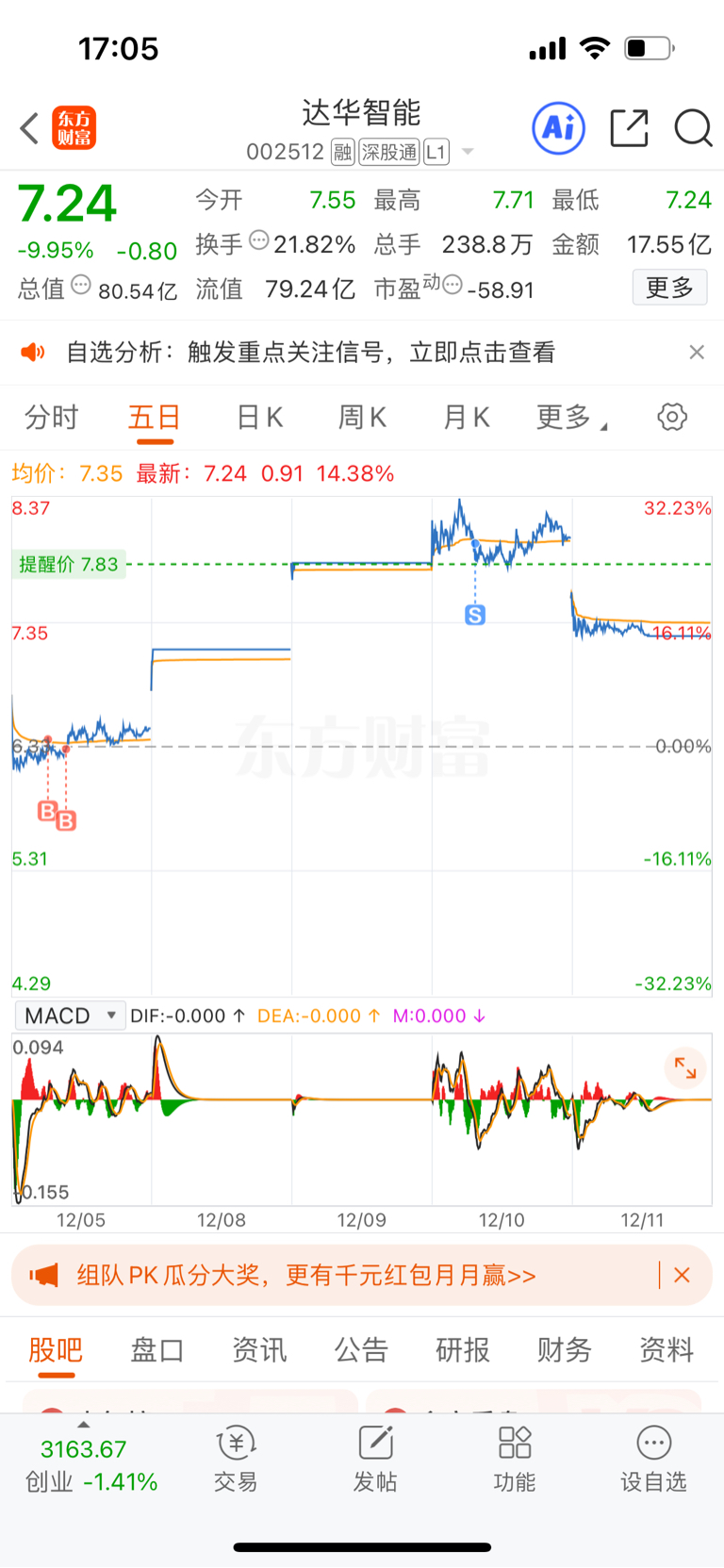 $达华智能(SZ002512)$ 还好昨天走了
