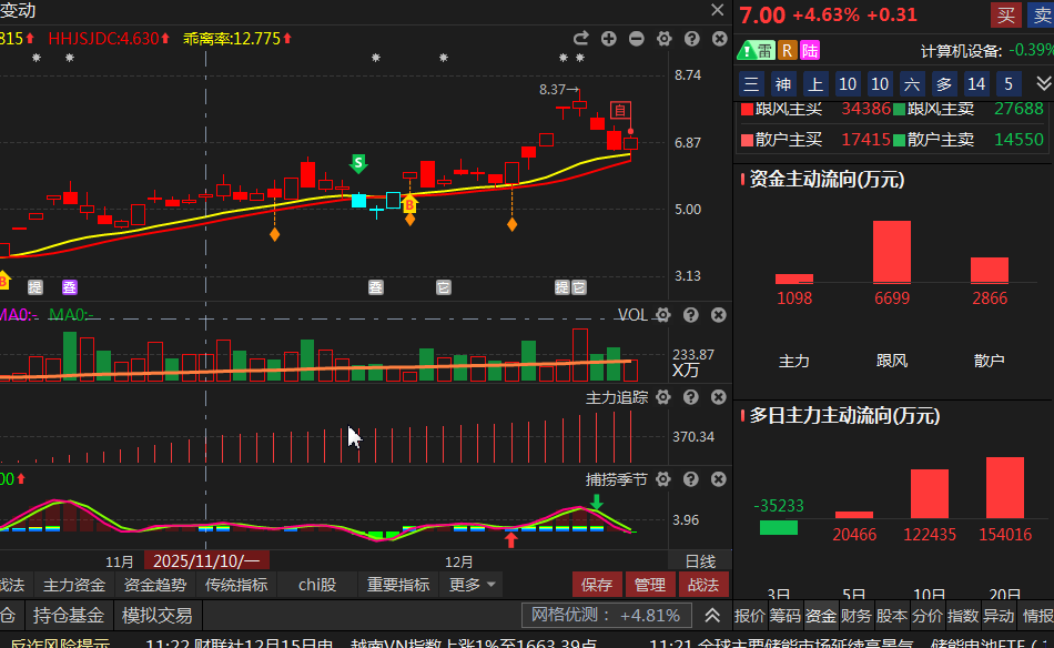 主力二十天净买入15亿4千万