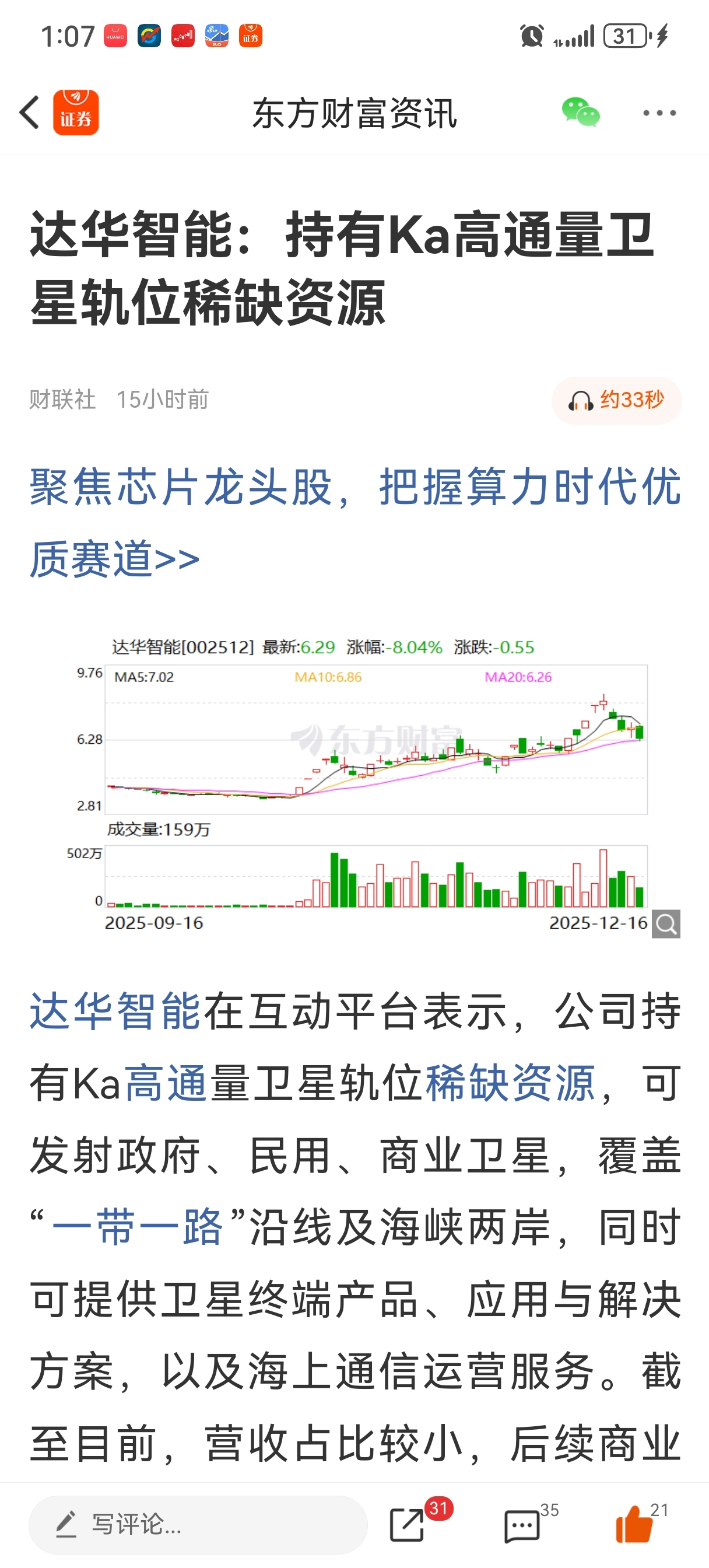 $达华智能(SZ002512)$ 董秘承认有Ka高通量卫星轨位稀缺资源,至于是不是商业航天业务,我认为是