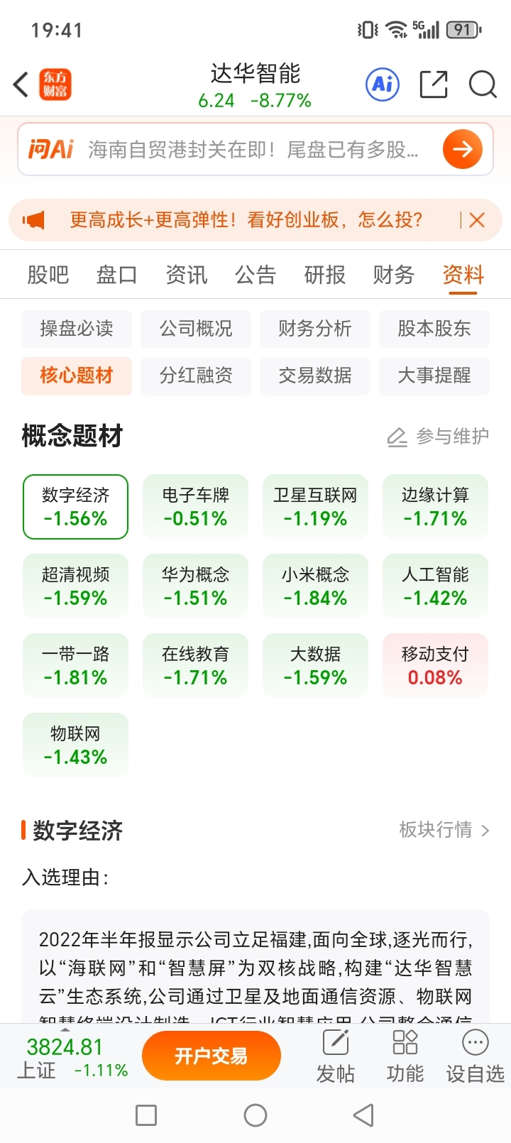 $达华智能(SZ002512)$  东方财富网今天删除了这股的商业航天概念,之前被忽悠了