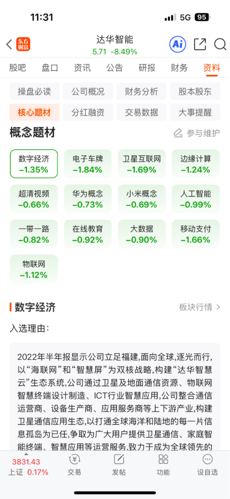 $达华智能(SZ002512)$ 从上周三开始下跌,八块的本,这我都能接受。股市有风险,入市需谨慎。但总有些老六问的一些问题是生怕股价上升,(有没有商业航天业务?)这下好了咯,本来股价就处于下跌趋势,又少了一个炒作题材,现在还有几个,把这几个也问一遍。(猪队友太多了)还有,股价上涨就异常公告,现在呢?这几天跌这么多,是正常的?