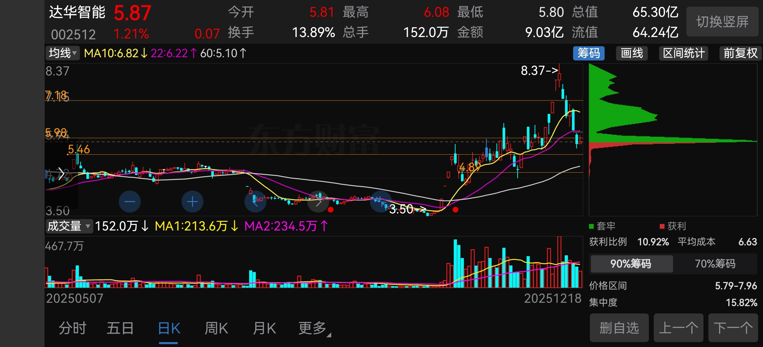 $达华智能(SZ002512)$ 筹码峰连续几天重心下移至主力成本价(可以连续看最近10天左右的筹码峰变化。),航空低价股优质股,可以择时低仓位进场。