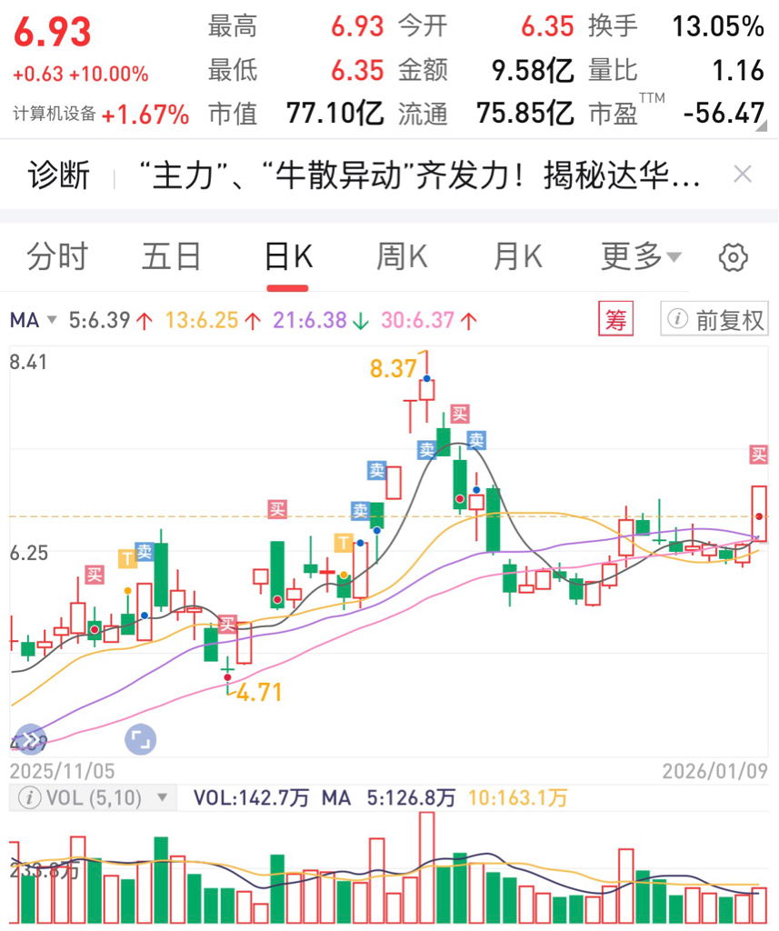 早盘一看数据可观,果断回来了,看看这波达华能有多高。