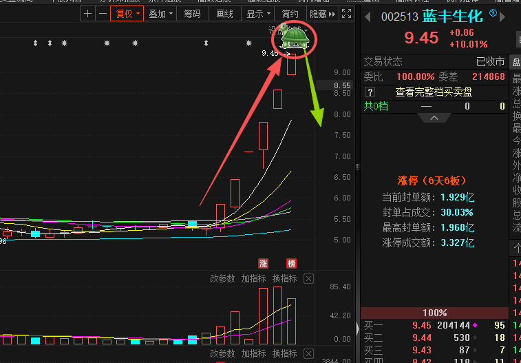 前三个涨停走势为三板组启动套人走势,由于市场情绪和连板的换手接力比较好,又拉了三个换手涨停!