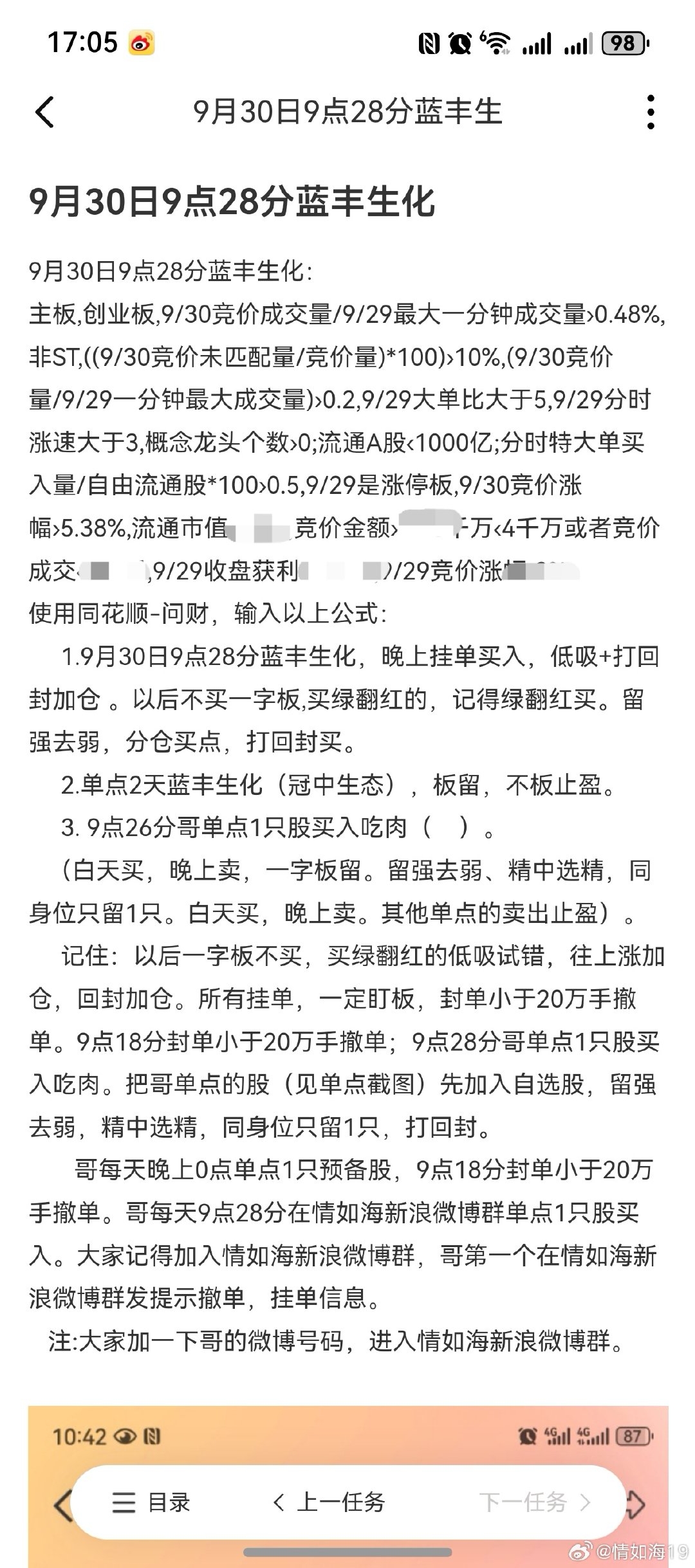 10月9日0点:1.单点6天全仓蓝丰生化单点,低吸+打回封,恭喜吃肉。收工。