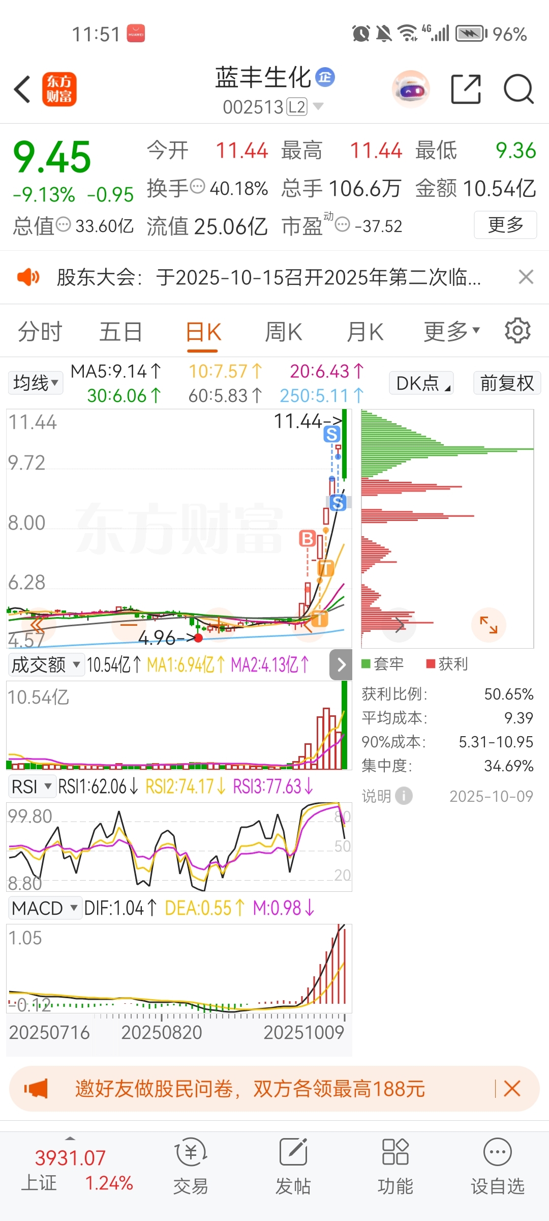 $蓝丰生化(SZ002513)$ 幸好节前出了