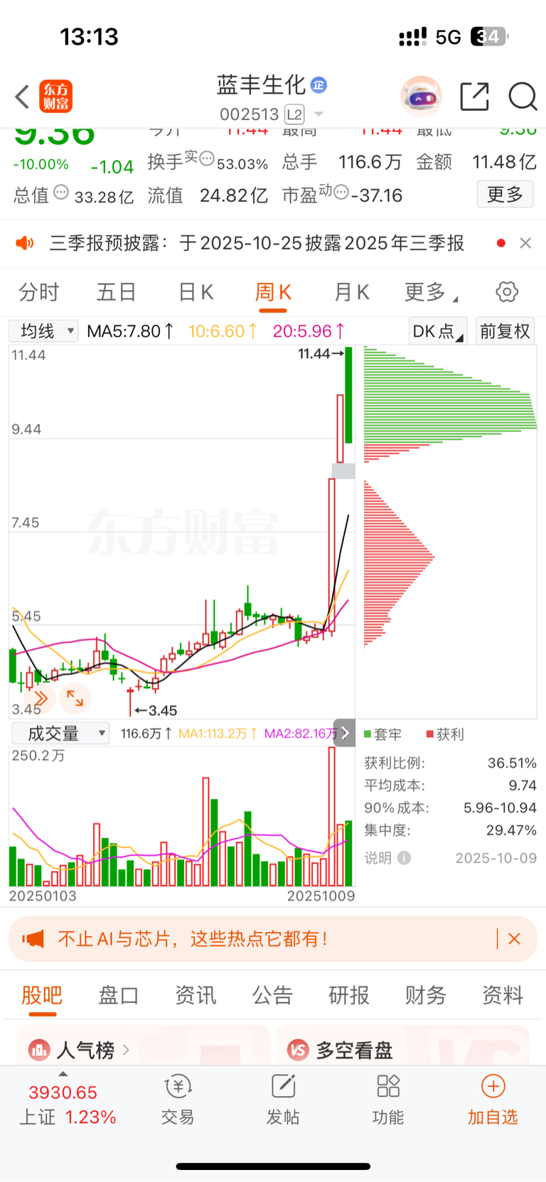 $蓝丰生化(SZ002513)$ 一半筹码套牢,主力化债任务完成了