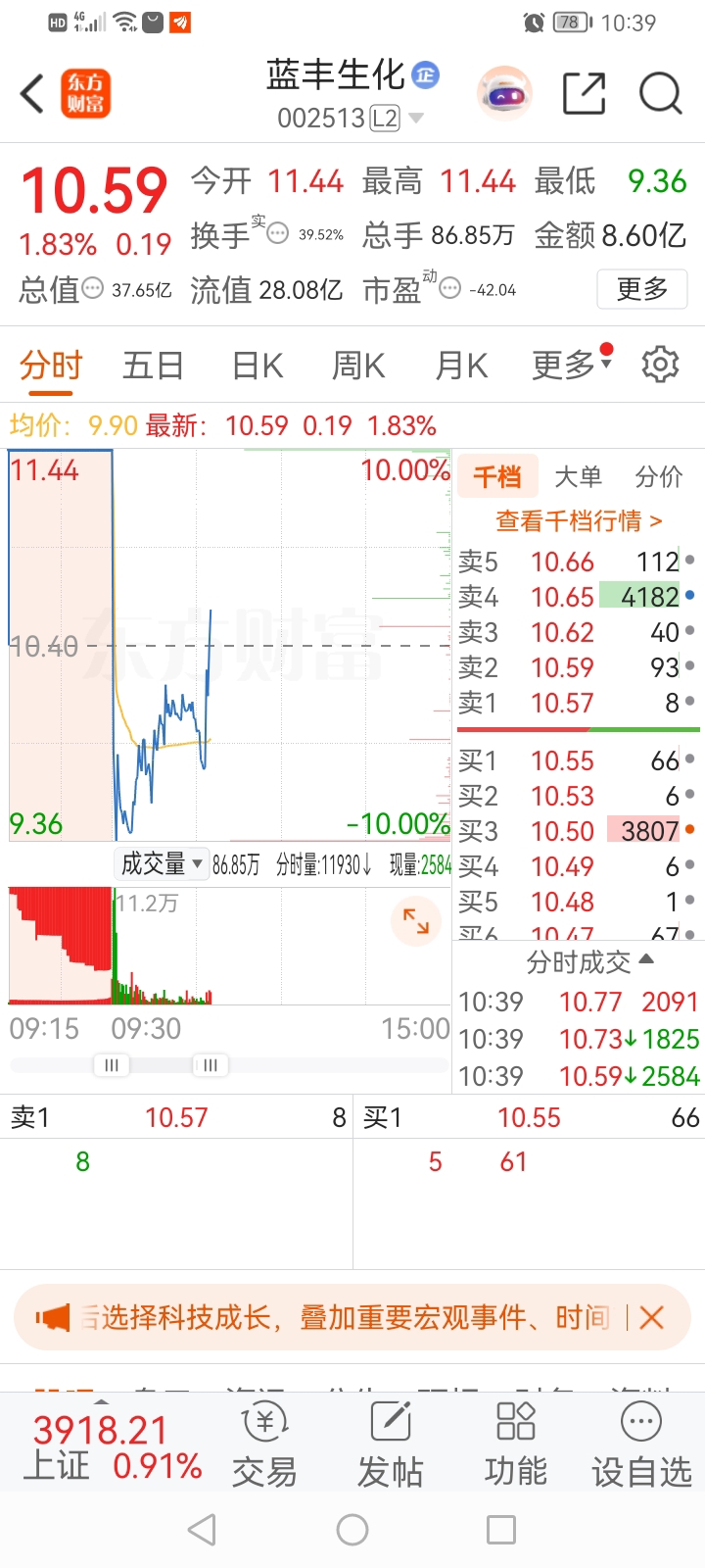 $蓝丰生化(SZ002513)$ 龙头首阴次日反包,明天地板价是买点?