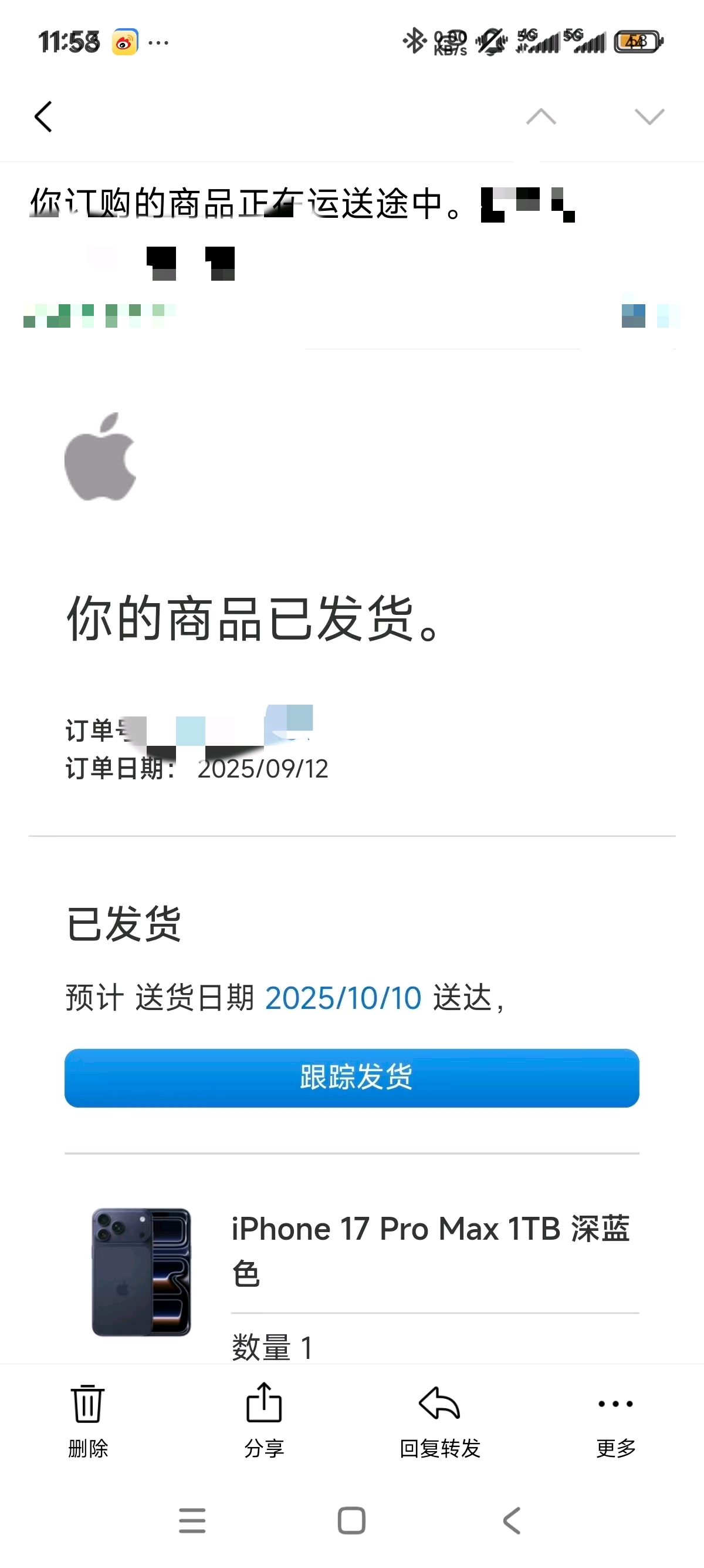 你们怎么知道俺的iPhone 17 Pro max 手机发货了