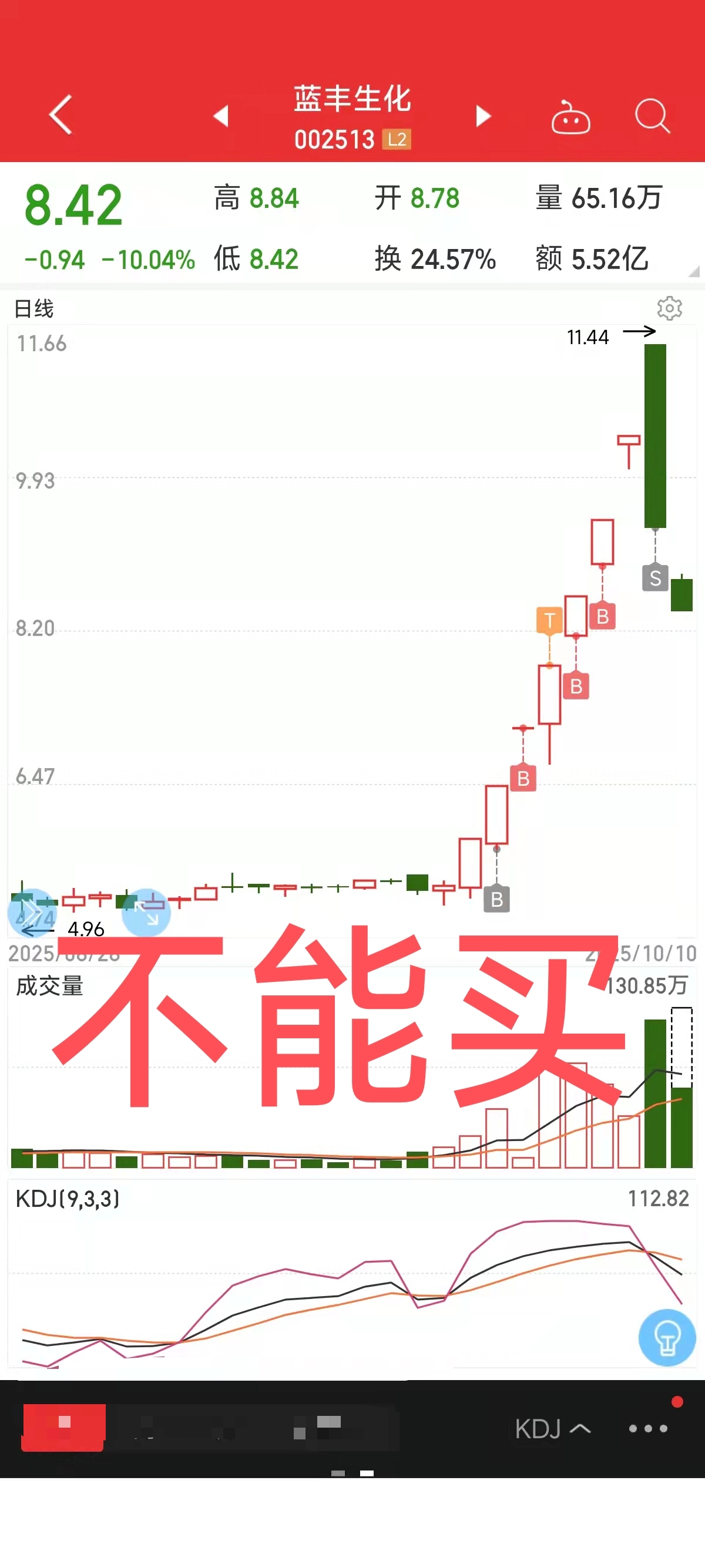 俺用买卖点告诉你们,蓝丰生化,不能买