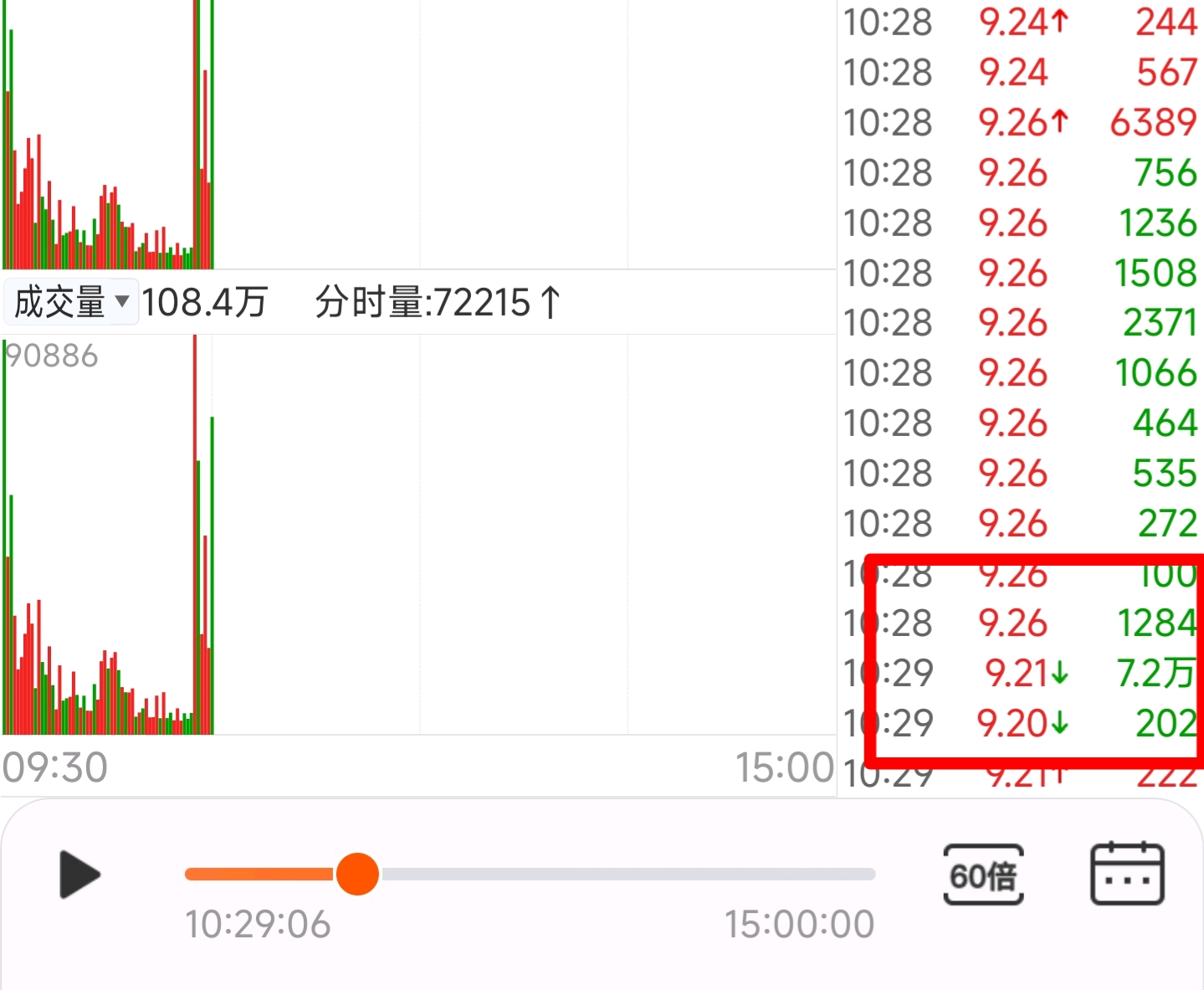 盘中看到单笔9.8万手,最后还有7万单啥砸出来了(今天卖无可卖)