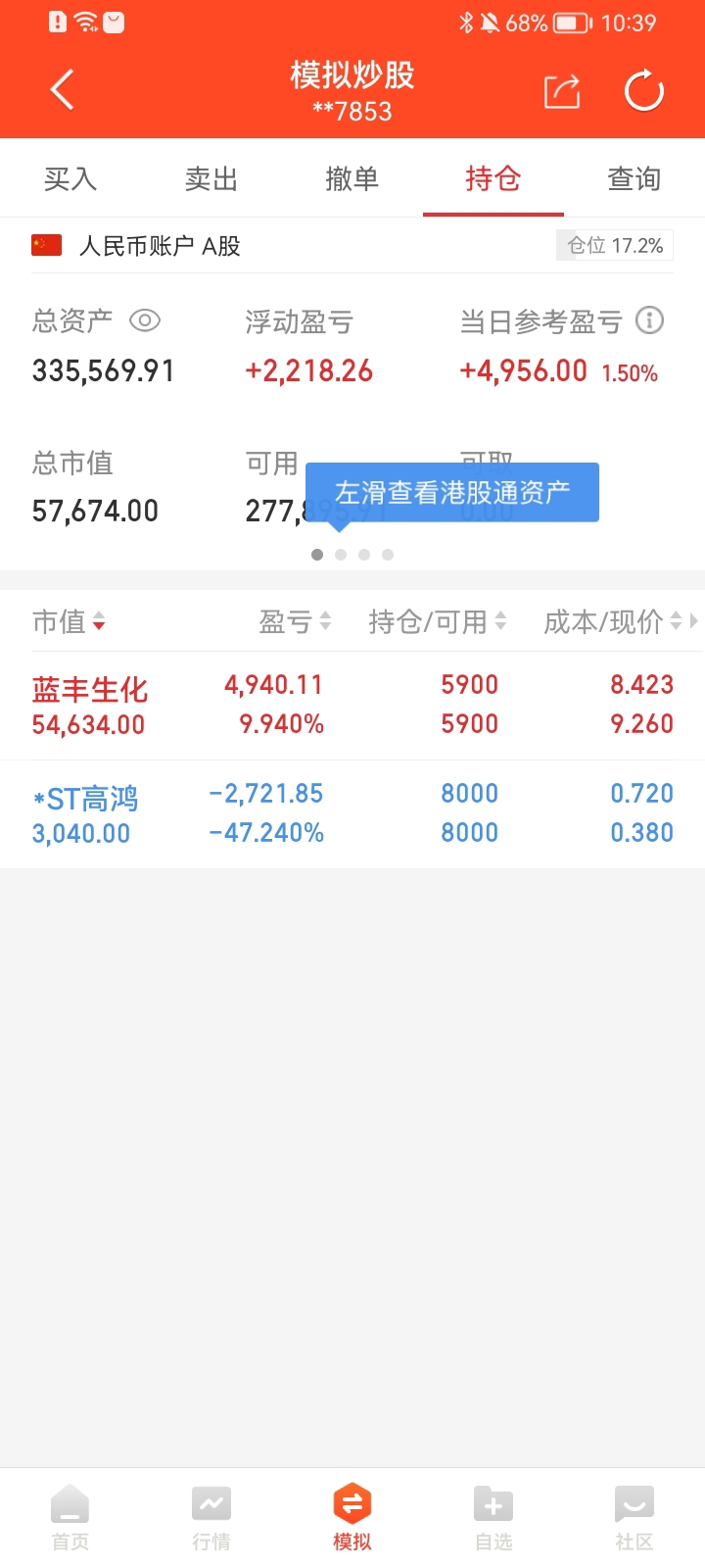 蓝丰生化很牛!可惜我被ST元成套住了,只能模拟买蓝丰生化!