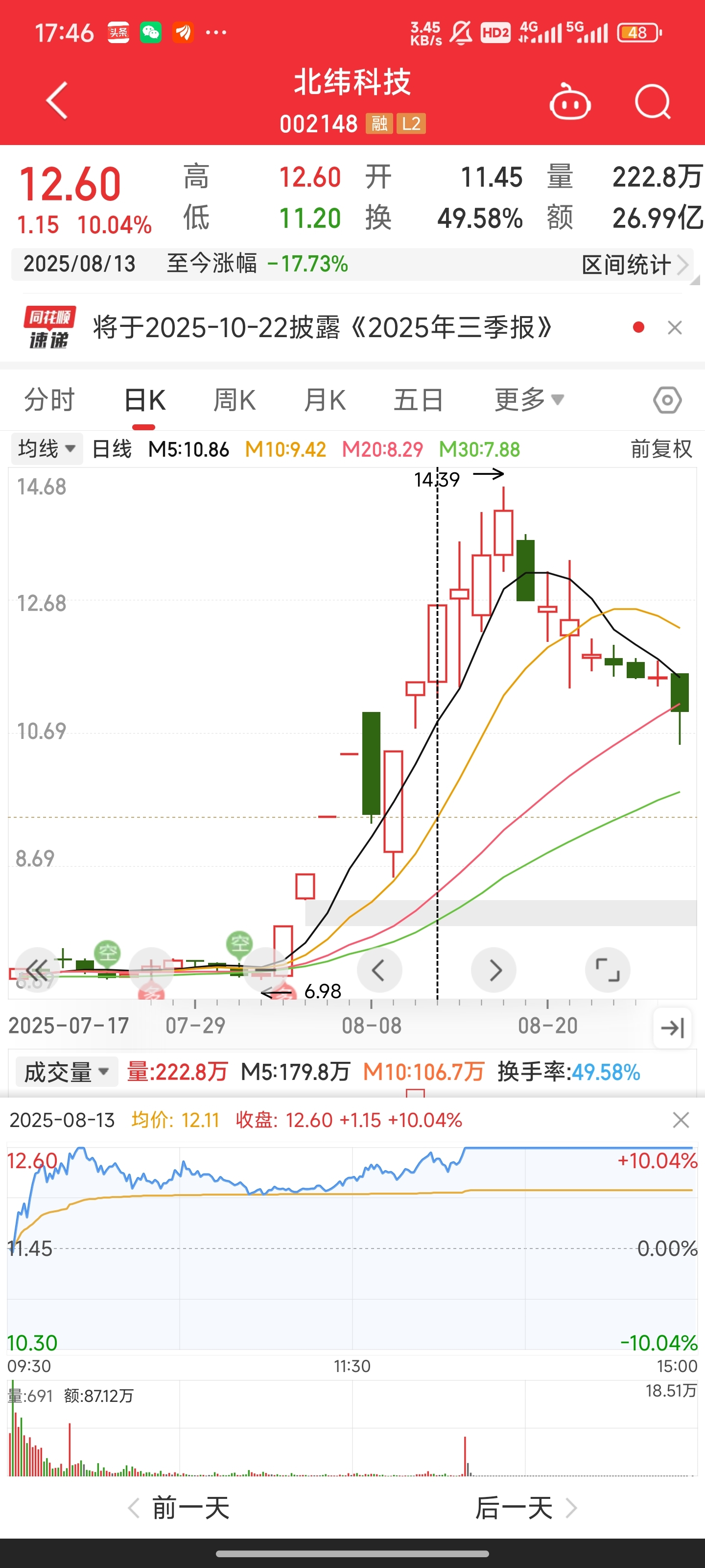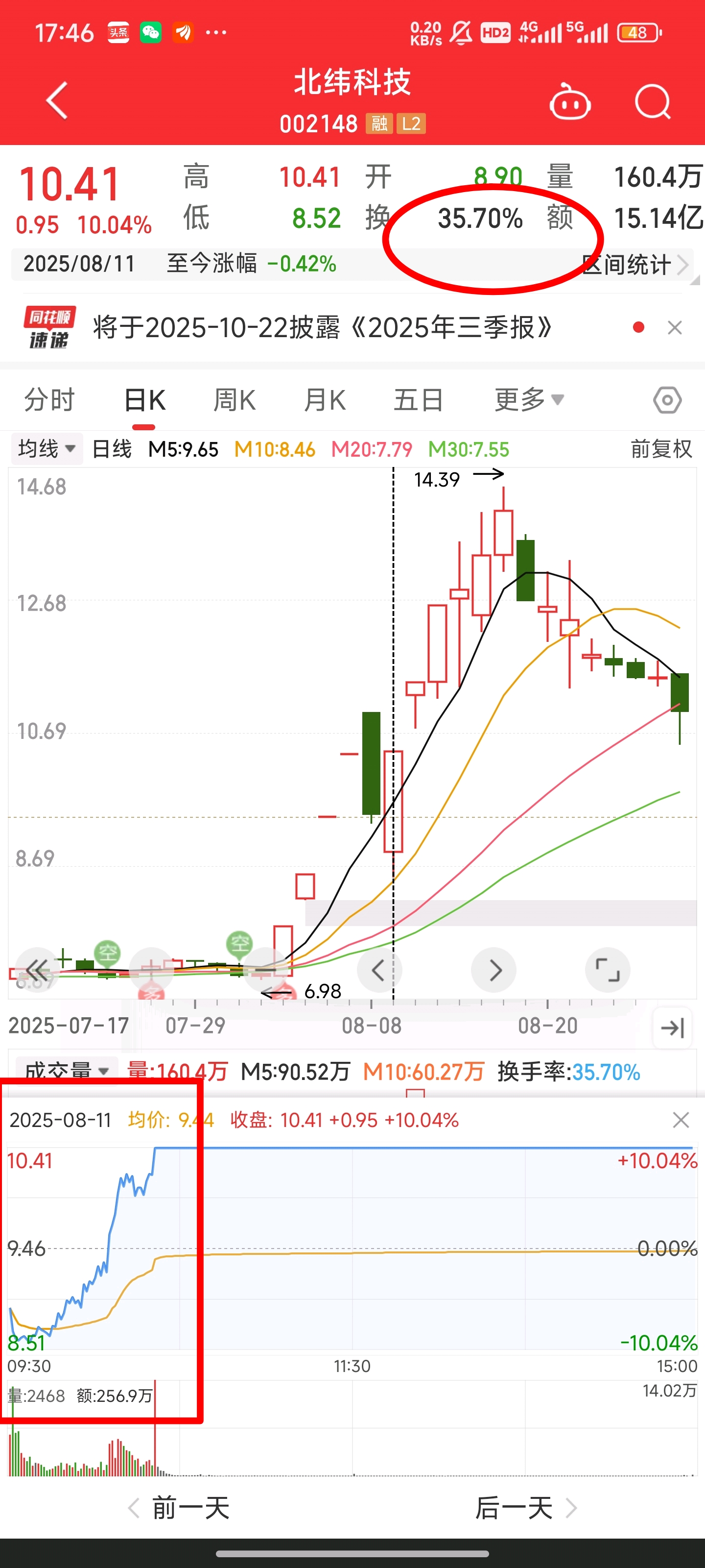 明天涨停板100%确认(看北纬8月11地天换手35%后2涨停)