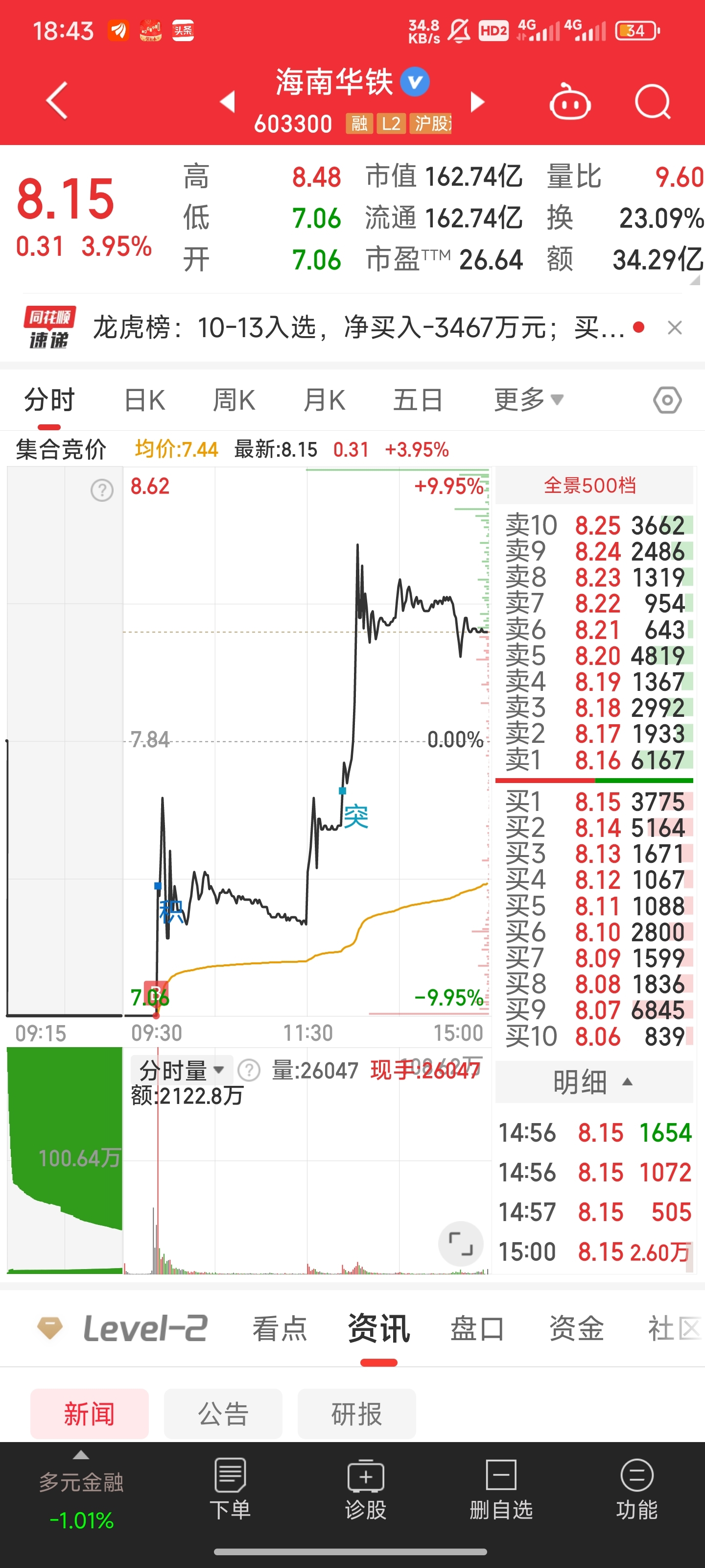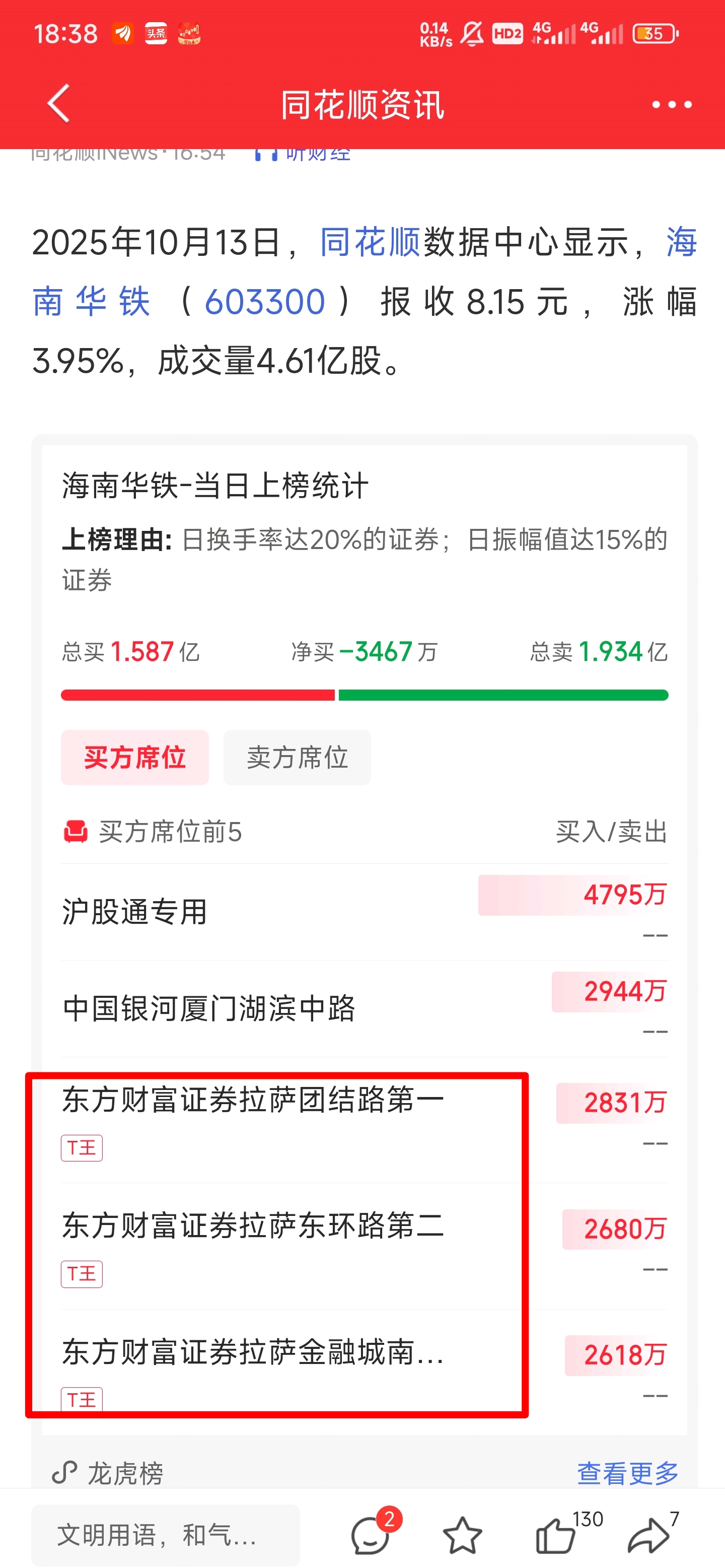 怪不得,蓝丰生化的散户深水割肉之后大涨不追,反手撬板海南华铁