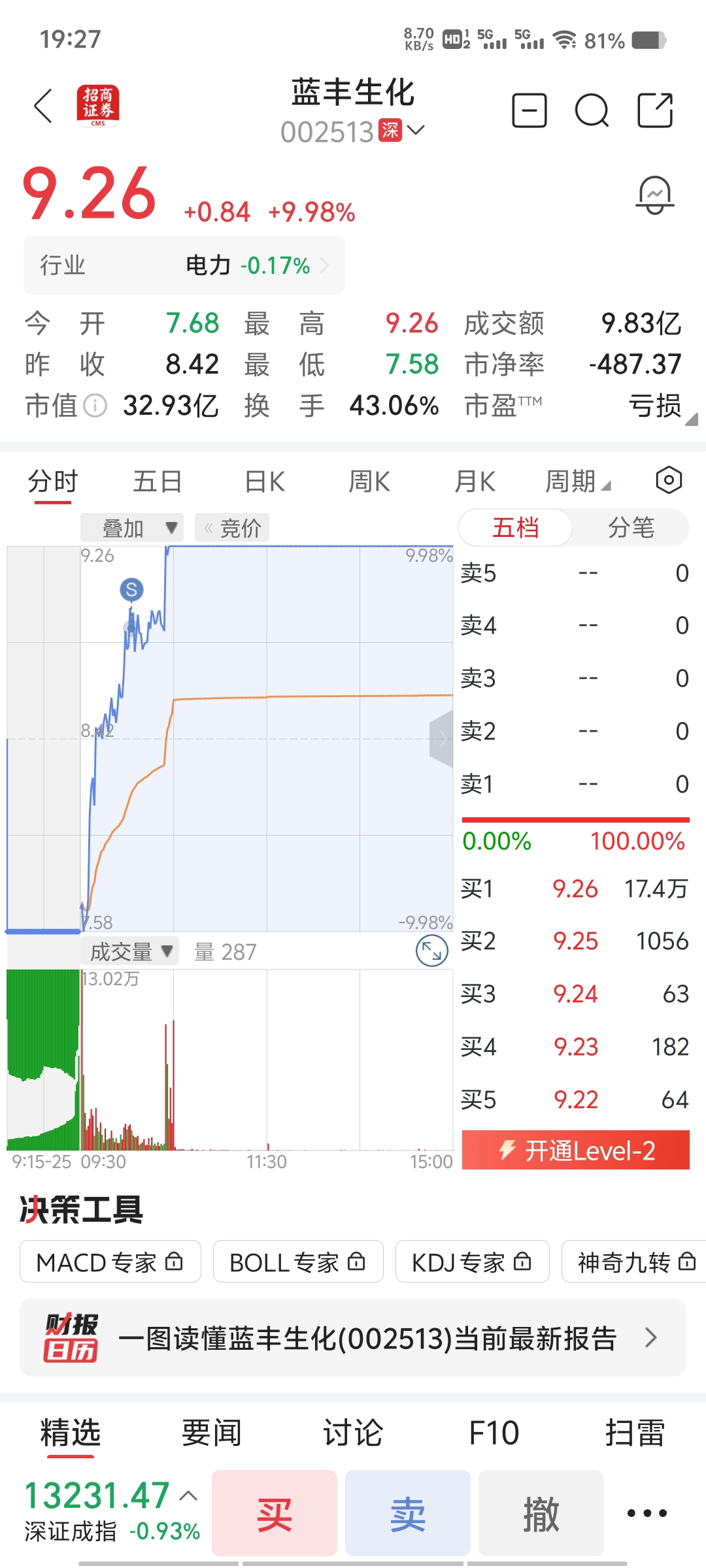 $蓝丰生化(SZ002513)$ 到底谁是龙头?今天跌停进了海南华铁。吃了15个点,没有
