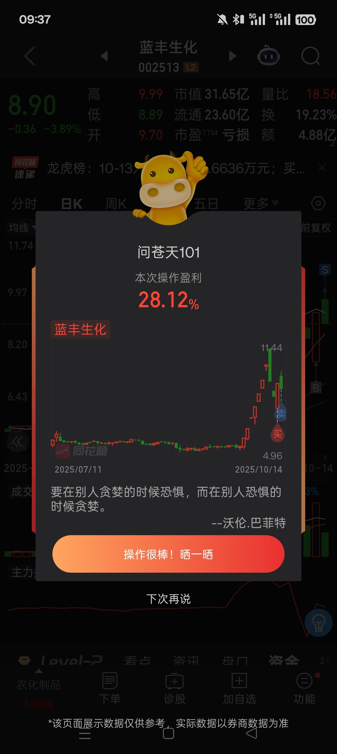 $蓝丰生化(SZ002513)$ 这才是昨天地板入的,早上跑了