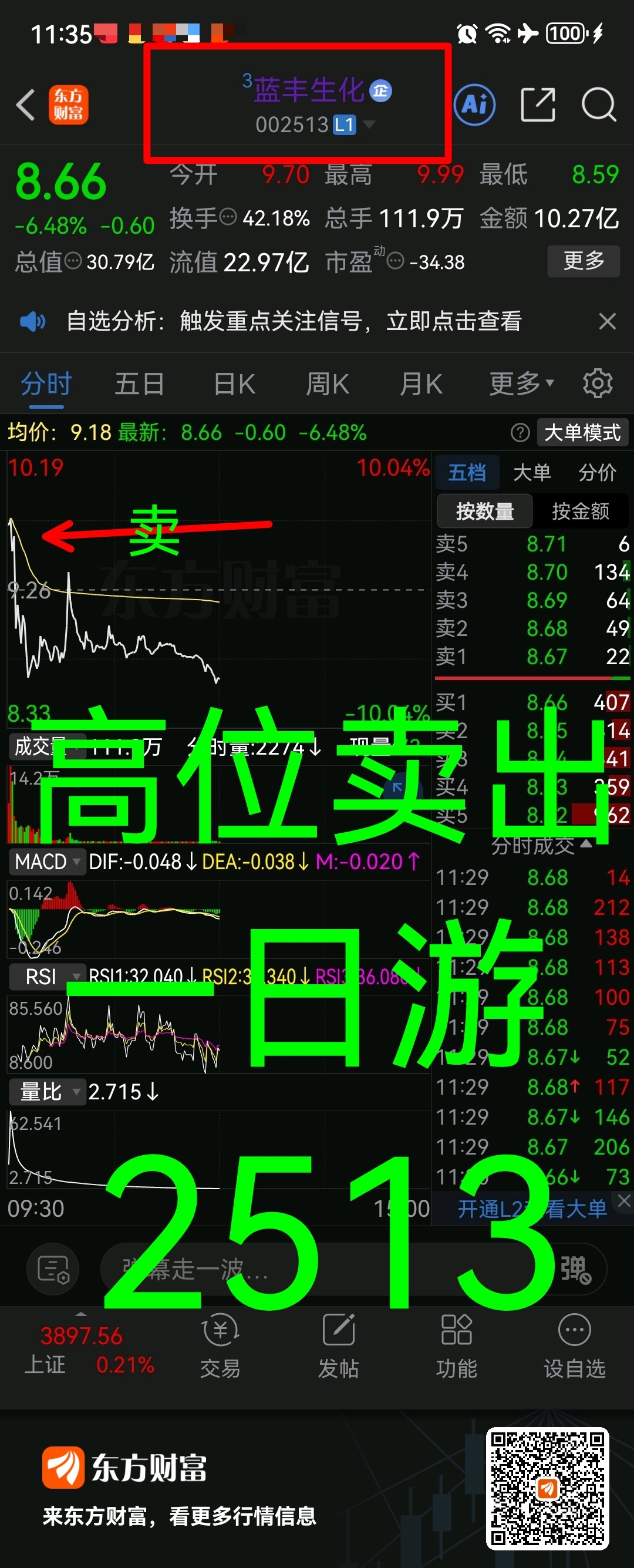 拉升一日游002513蓝丰生化早盘拉升获利了结(知行合一)看事