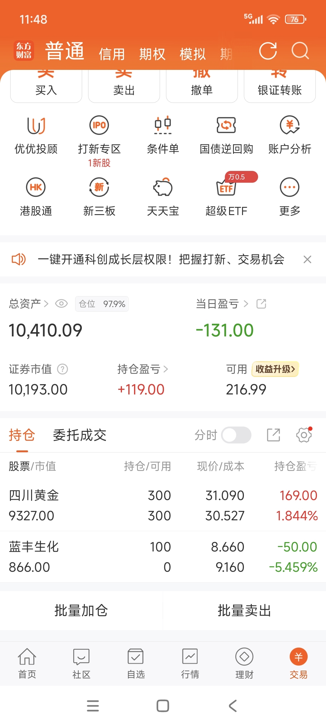 $蓝丰生化(SZ002513)$ 买了100股,亏了我50,气的我吃不下中饭