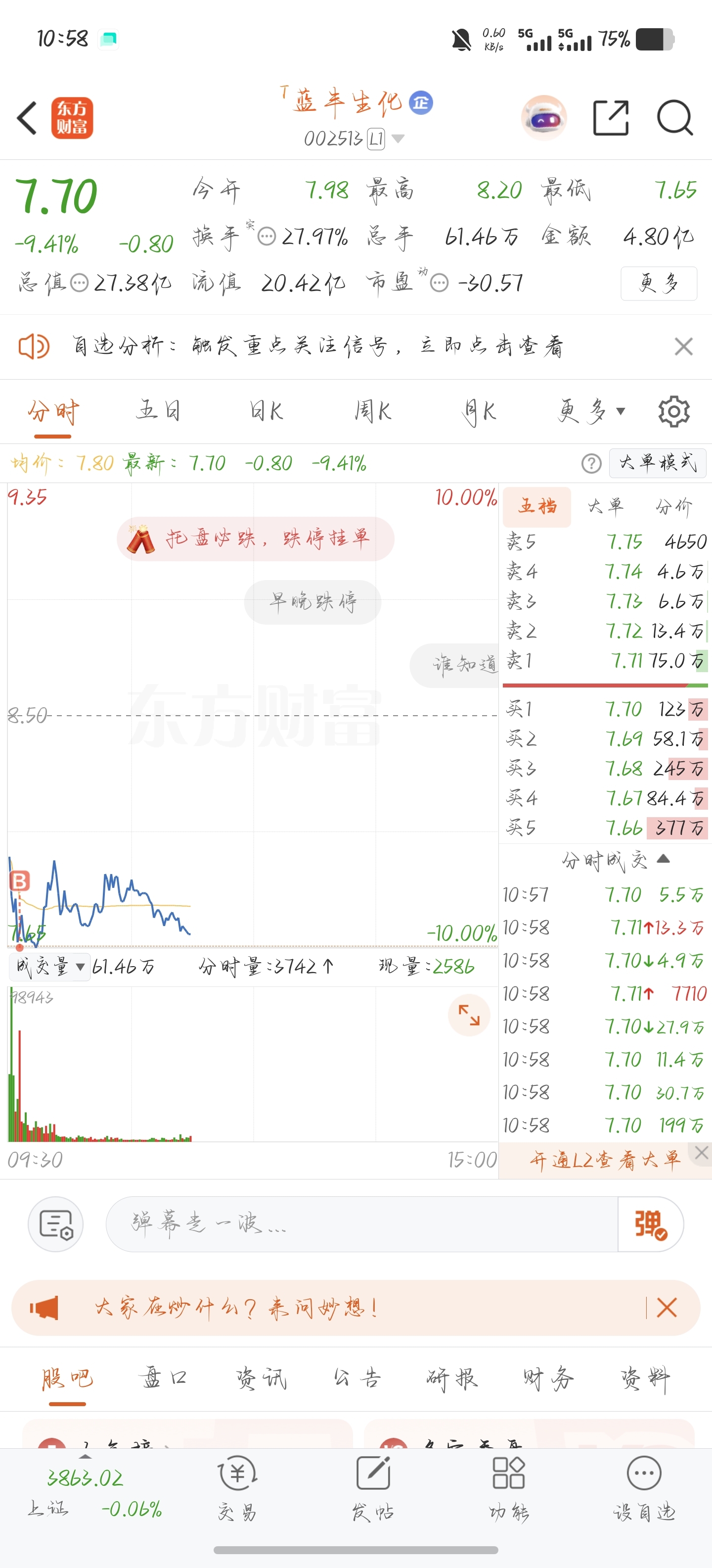$蓝丰生化(SZ002513)$ 上又上不去,下又下不来。要不你还是跌停吧,你不跌停我不放心啊