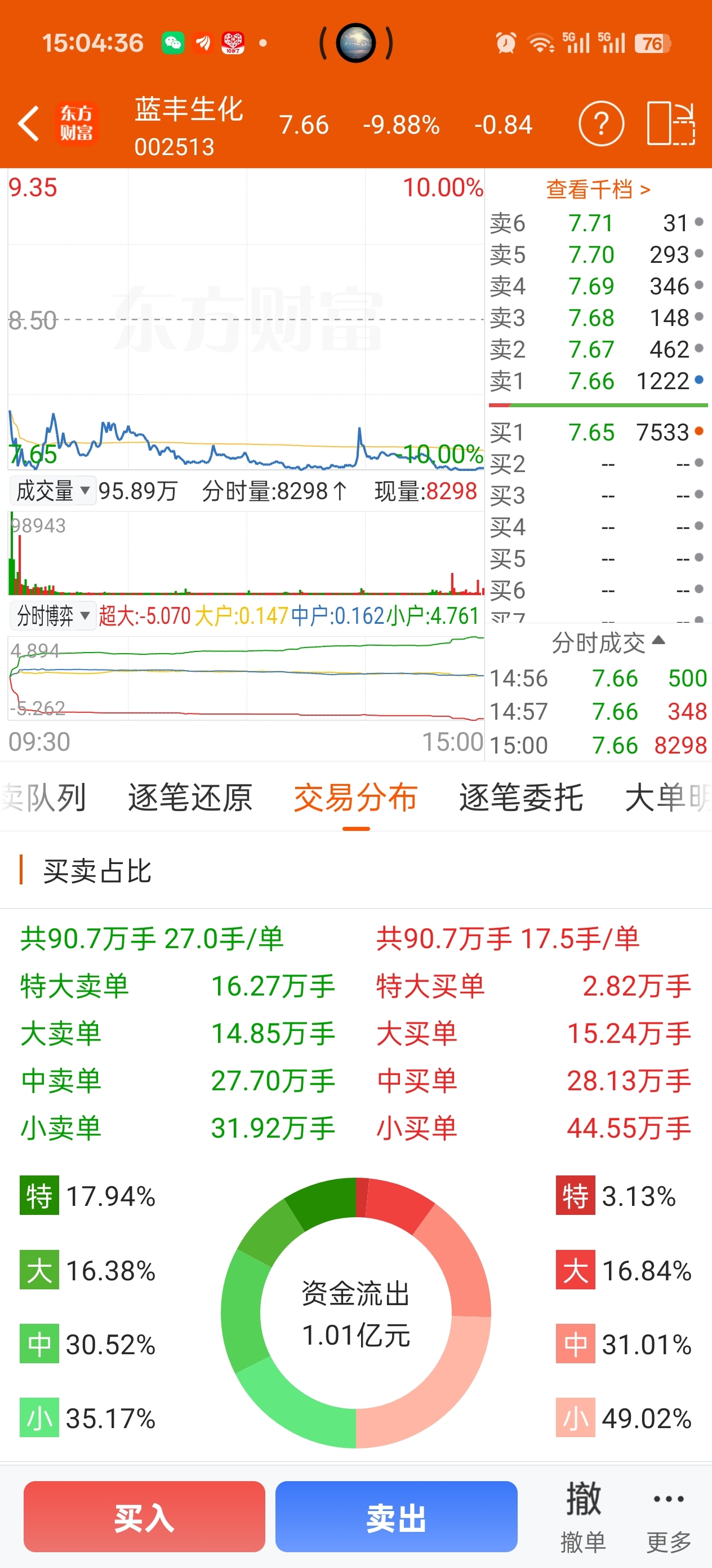 $蓝丰生化(SZ002513)$ 好现象,,,赚了一分钱