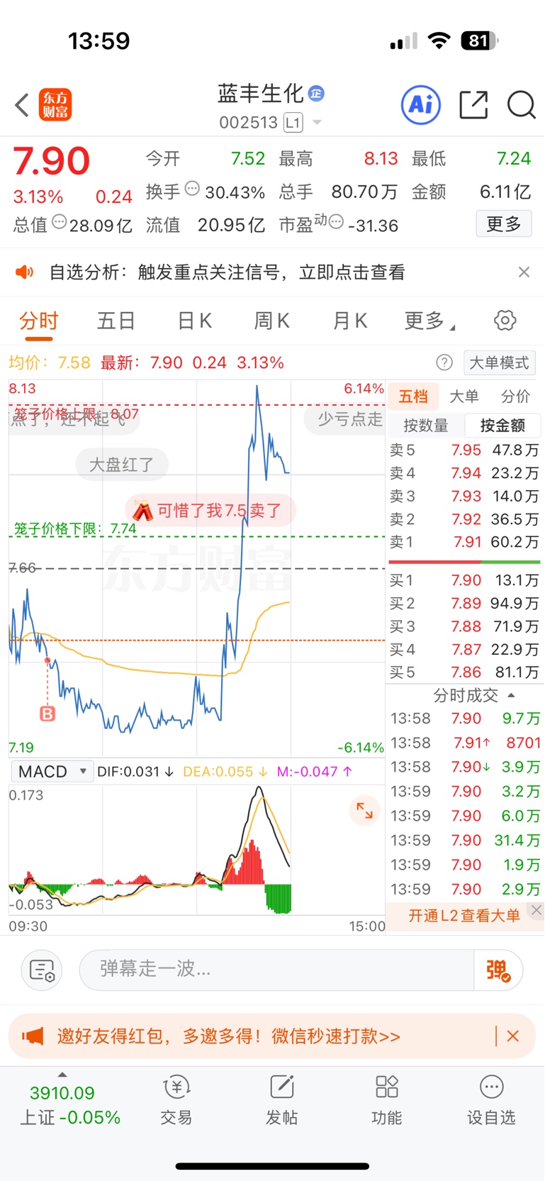 $蓝丰生化(SZ002513)$ 6.5元见,我们拭目以待