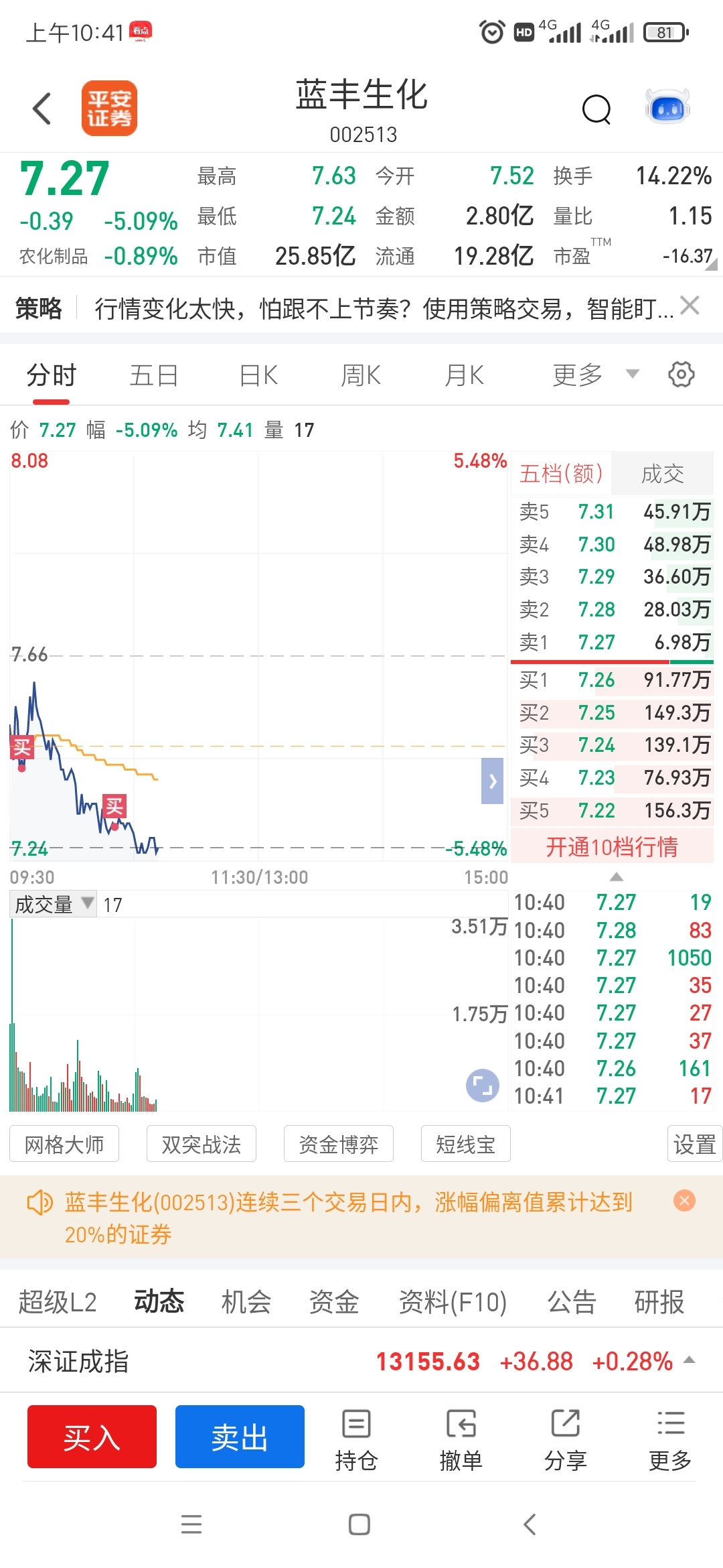 $蓝丰生化(SZ002513)$ 套的死死的很惨。我要割肉了,今天进去的没办法啦,能抛的都抛了