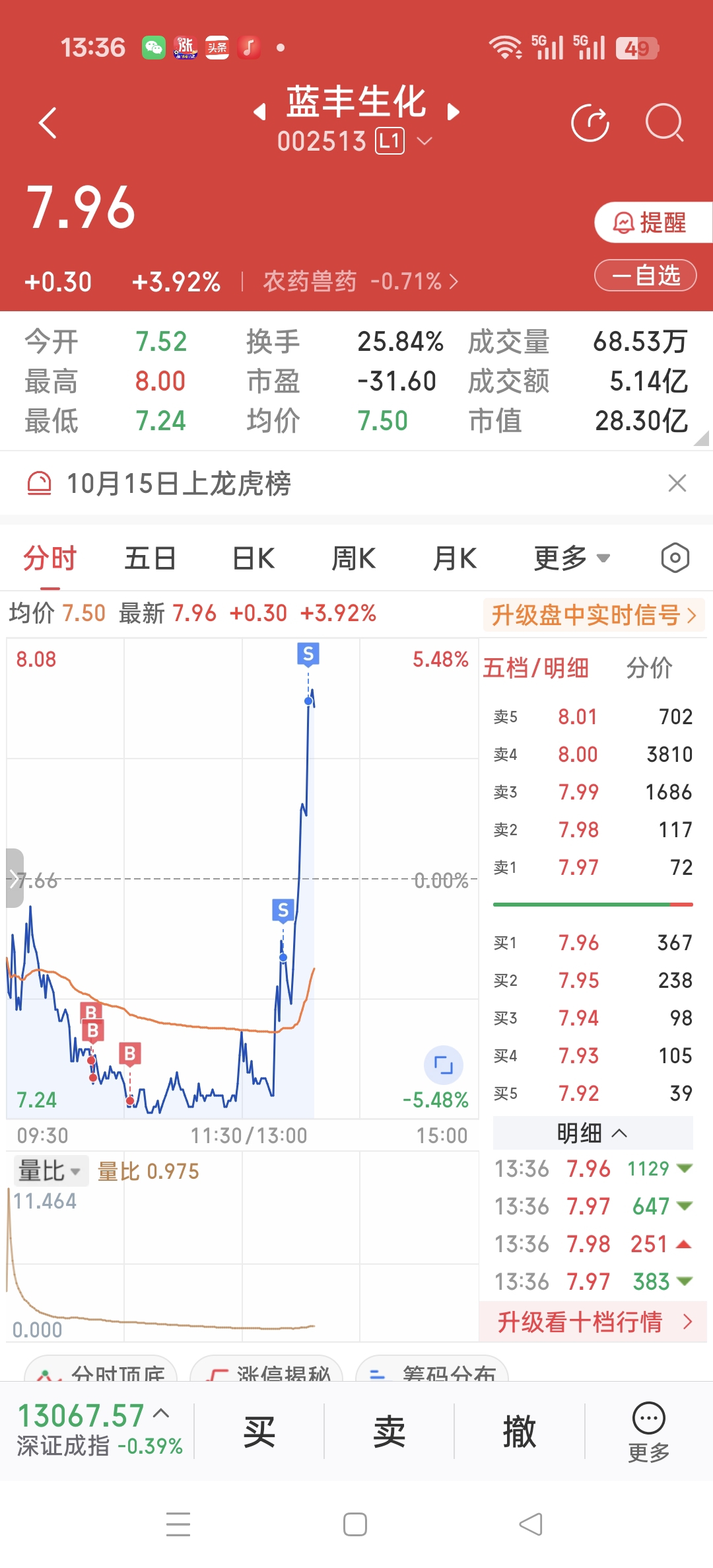 $蓝丰生化(SZ002513)$ 可以了不管涨停还是下来都可以,保持理智