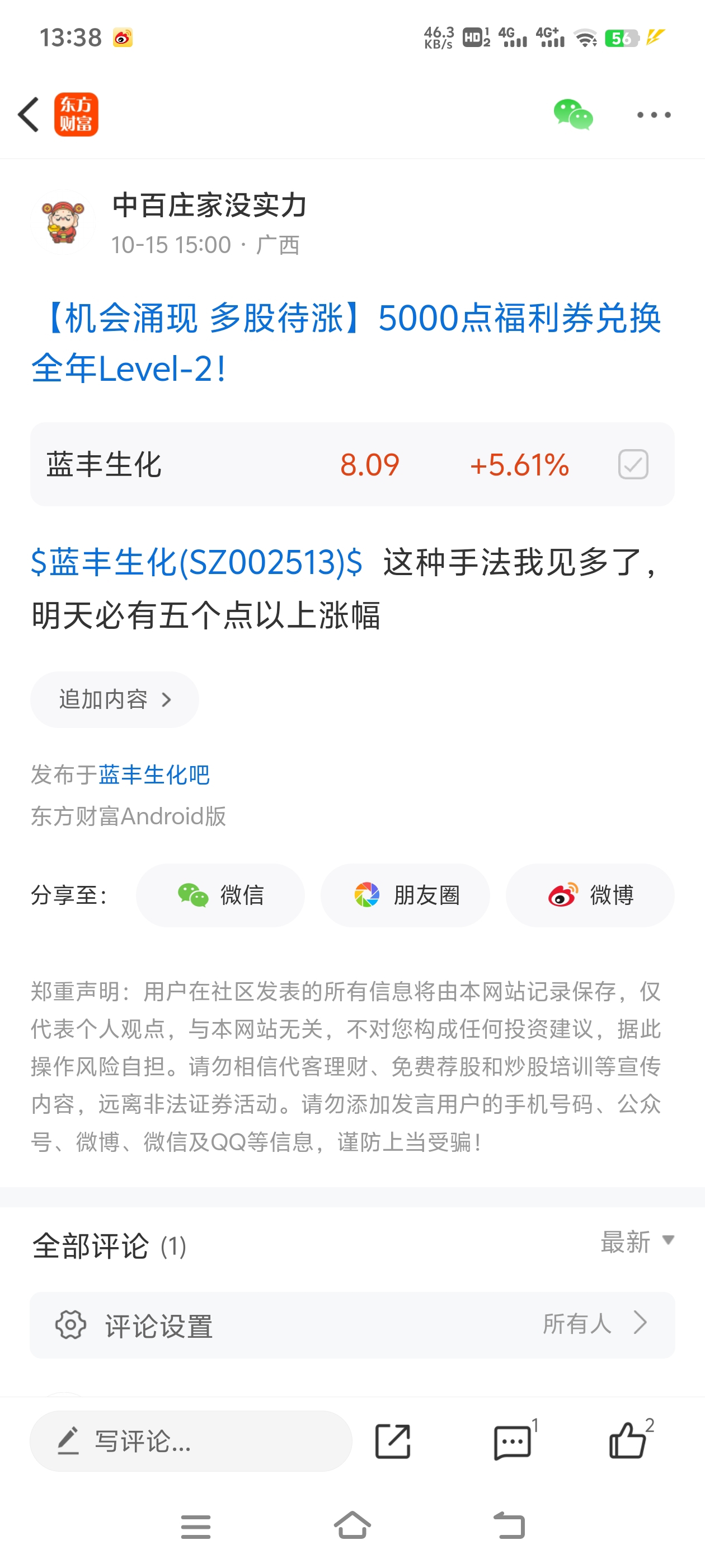 温馨提示: 1.根据《证券法》规定,禁止编造、传播虚假信息或者误导性信息,扰乱证券市场;2.用户在本社区发表的所有资料、言论等仅代表个人观点,与本网站立场无关,不对您构成任何投资建议。用户应基于自己的独立判断,自行决定证券投资并承担相应风险。《东方财富社区管理规定》
