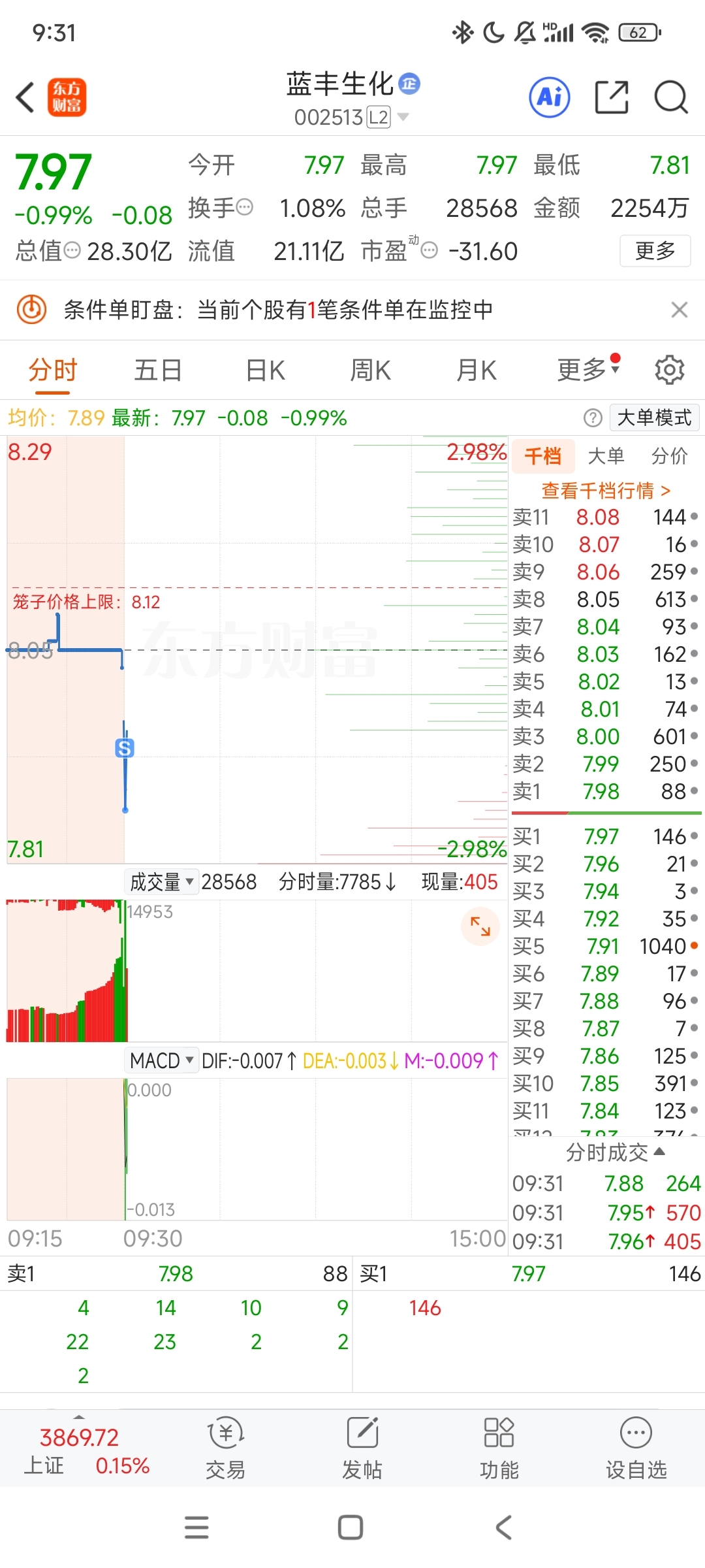 $蓝丰生化(SZ002513)$ 条件单触发了,我去