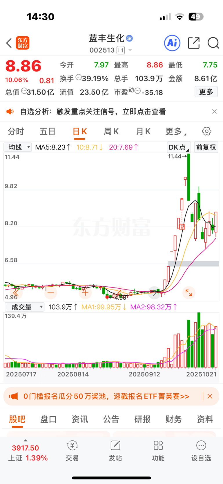 $蓝丰生化(SZ002513)$ 有时候装死才是好的