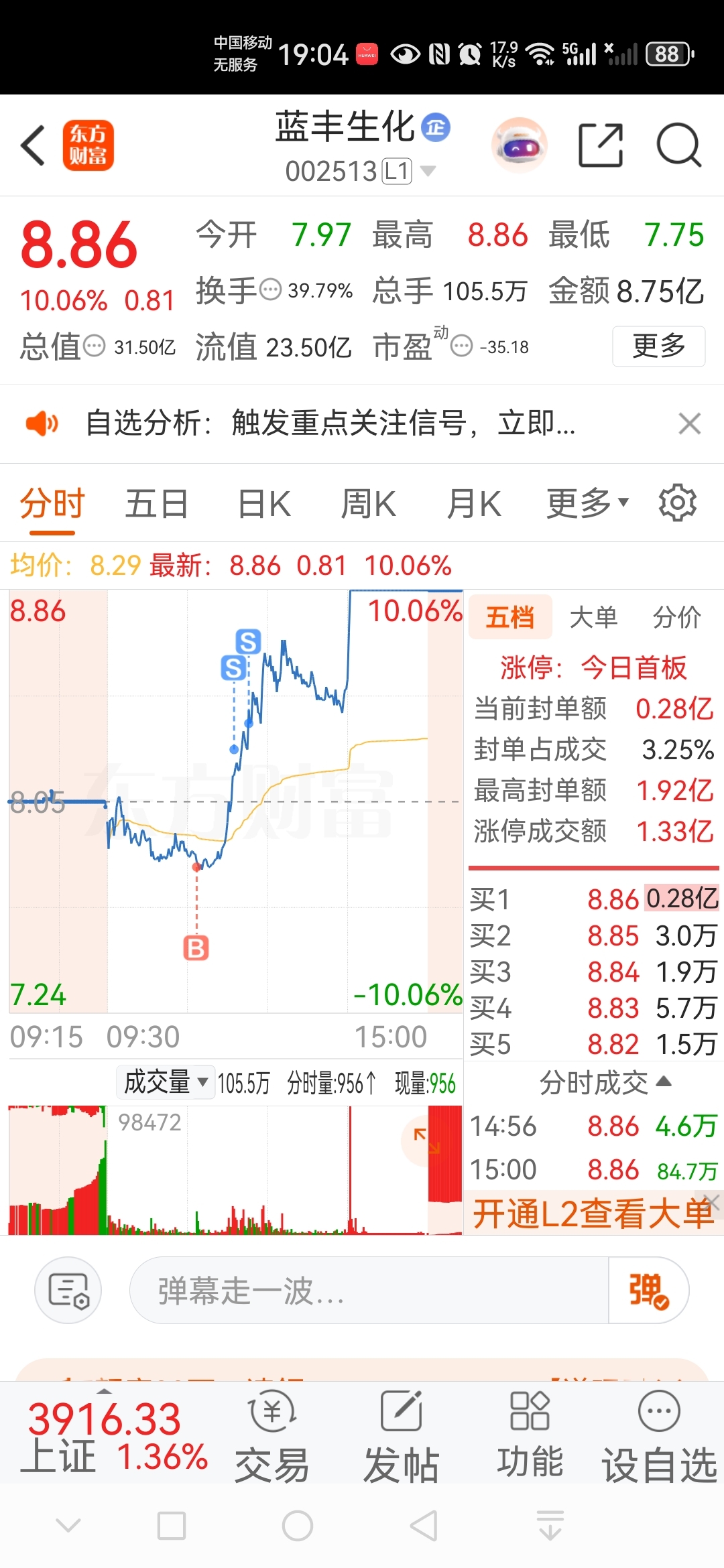 $蓝丰生化(SZ002513)$ 我嘞个去,T飞了