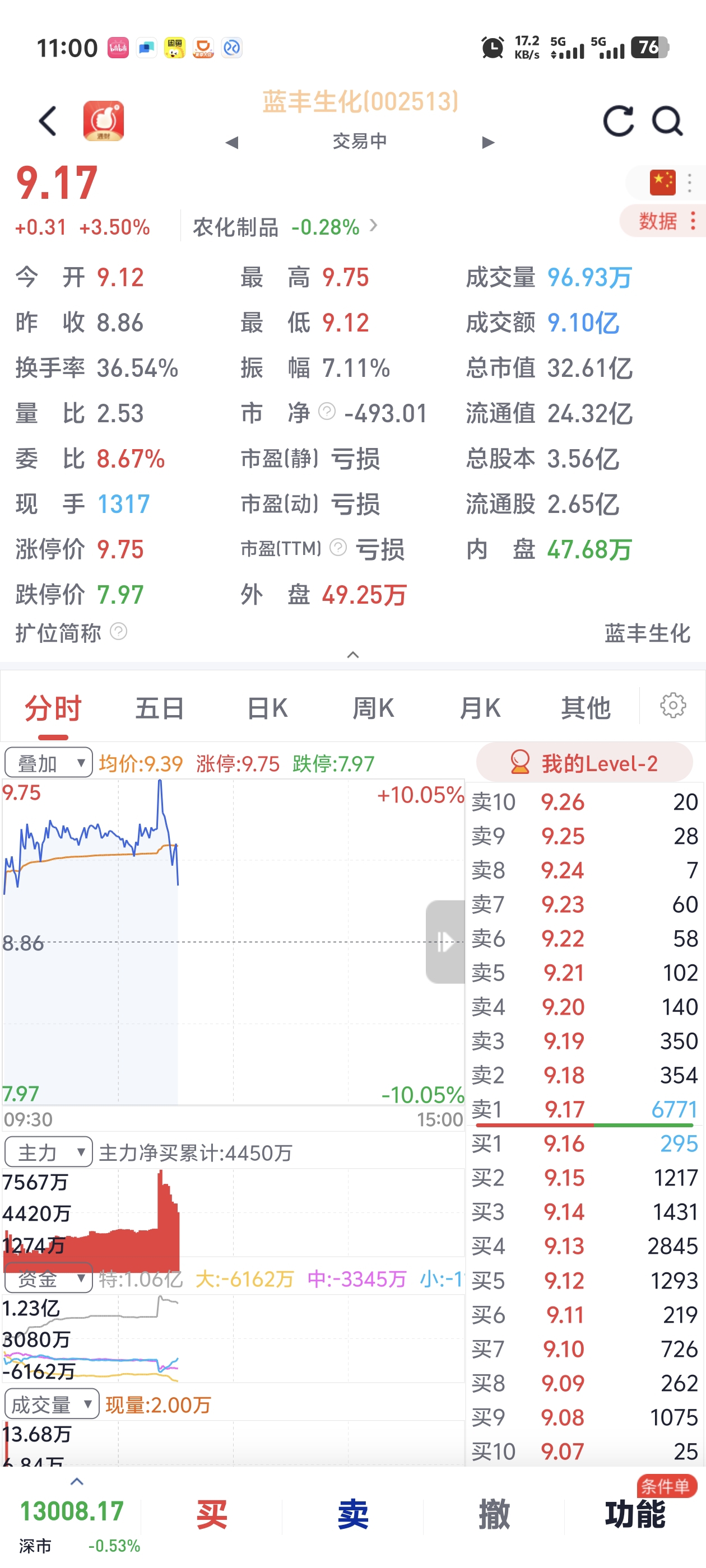 $蓝丰生化(SZ002513)$ 盘中就没了,恐怖上演,半天看多。还没结束就彻底心如死灰【下跌回调又重新打开了】