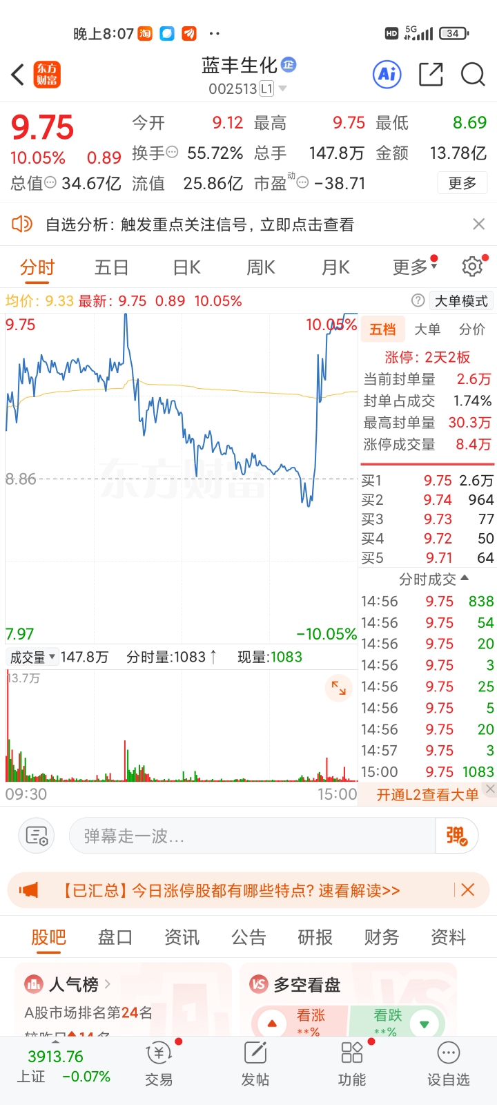 $蓝丰生化(SZ002513)$ $建发致新(SZ301584)$ $合百集团(SZ000417)$