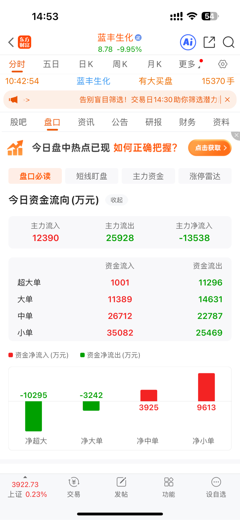哎,冲动了。。。今天不该买的。大单跑了1.1个小目标,只进了0.1个小目标。。。