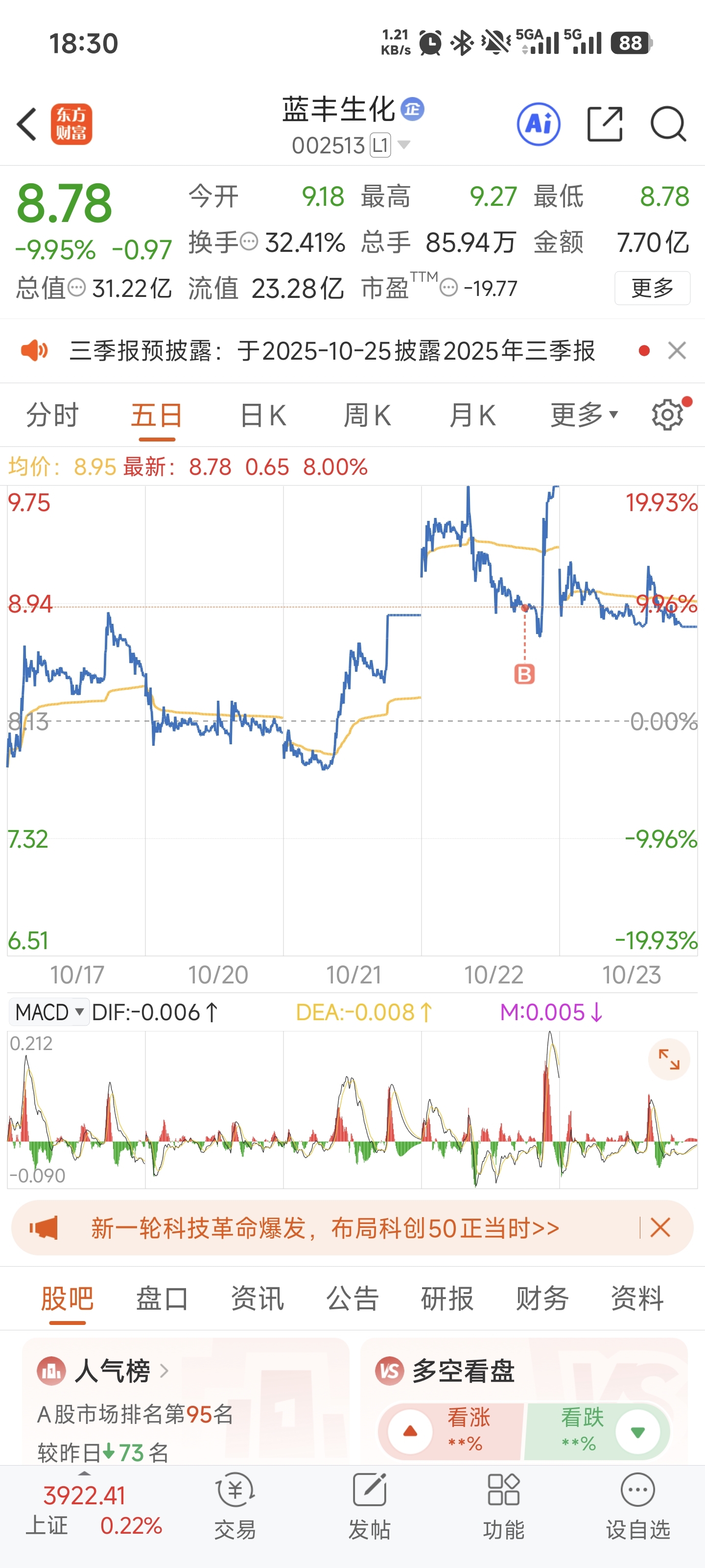 $蓝丰生化(SZ002513)$ 昨天,高兴了一晚上,今天下班一看蒙圈了,还亏一个点