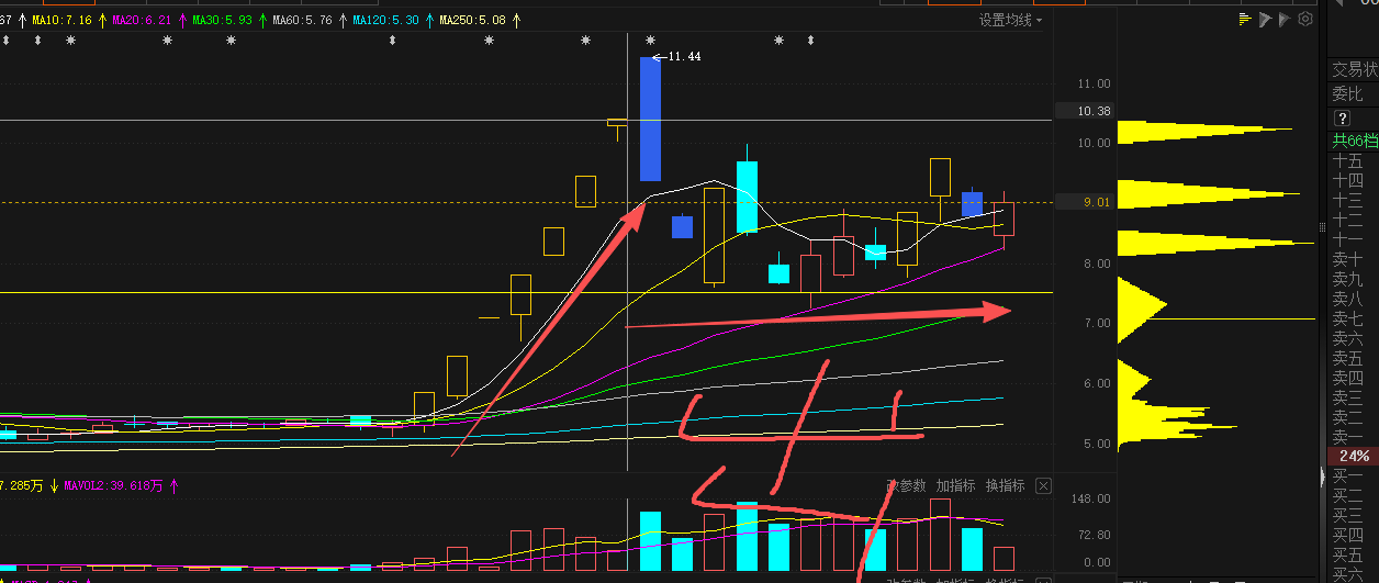 明显看到呈现三波势力给我感觉像是从低位累计大量筹码,拉升至高点后逐步出货,前几日