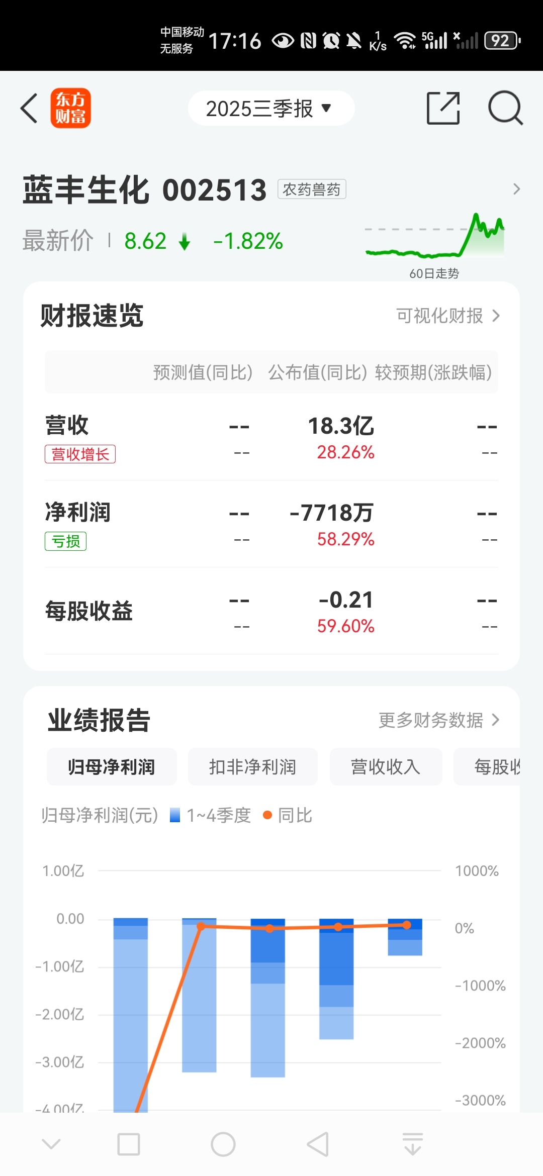 $蓝丰生化(SZ002513)$ 还好还好,亏损收窄了