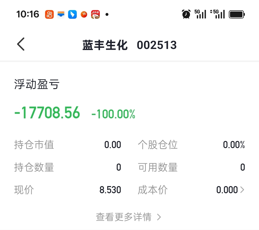 $蓝丰生化(SZ002513)$ 冲不上去,我先跑了,亏了17000多,等调整结束我再进来。