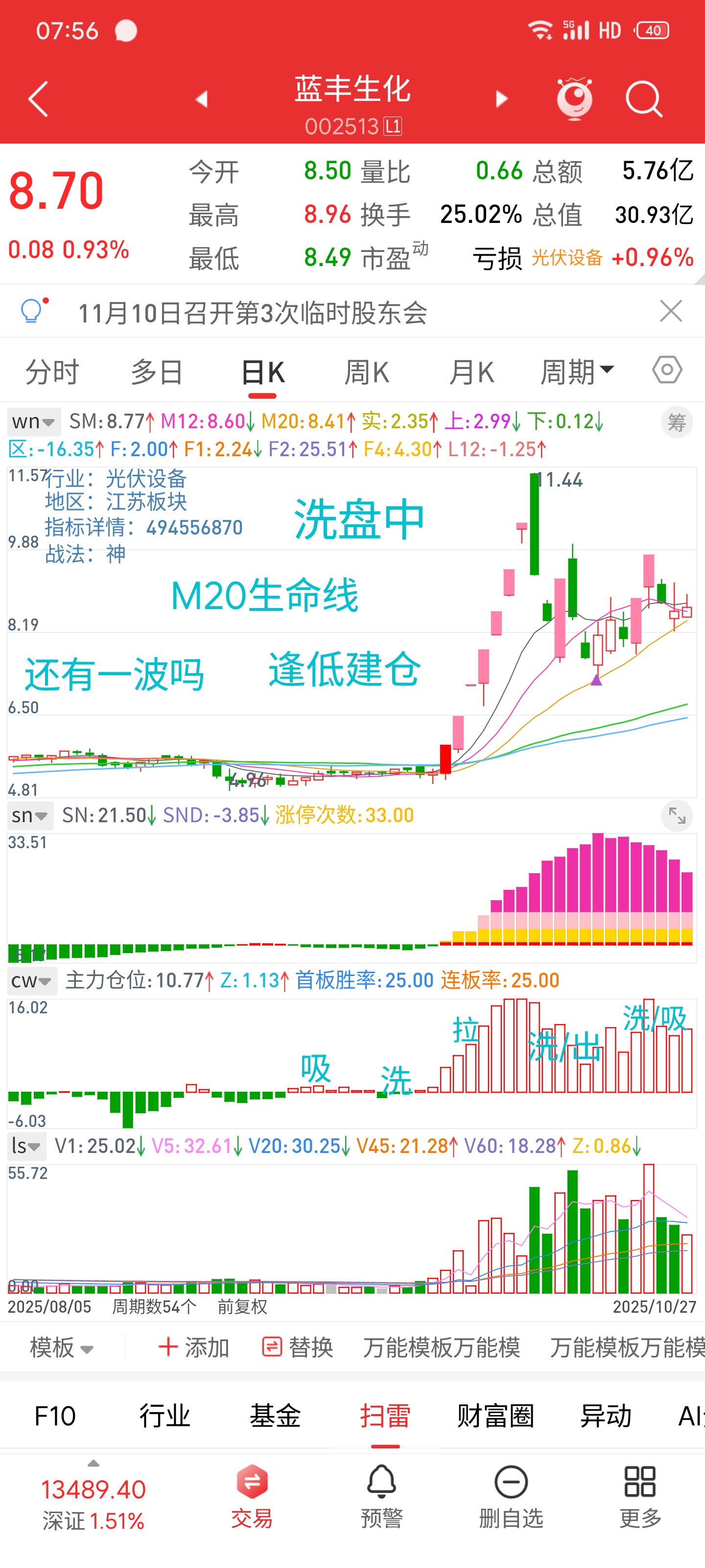 $蓝丰生化(SZ002513)$ 它股性还蛮好的成交量也足,活跃度高资金进来又是一波。总之在生命线M20附近建仓风险可控。