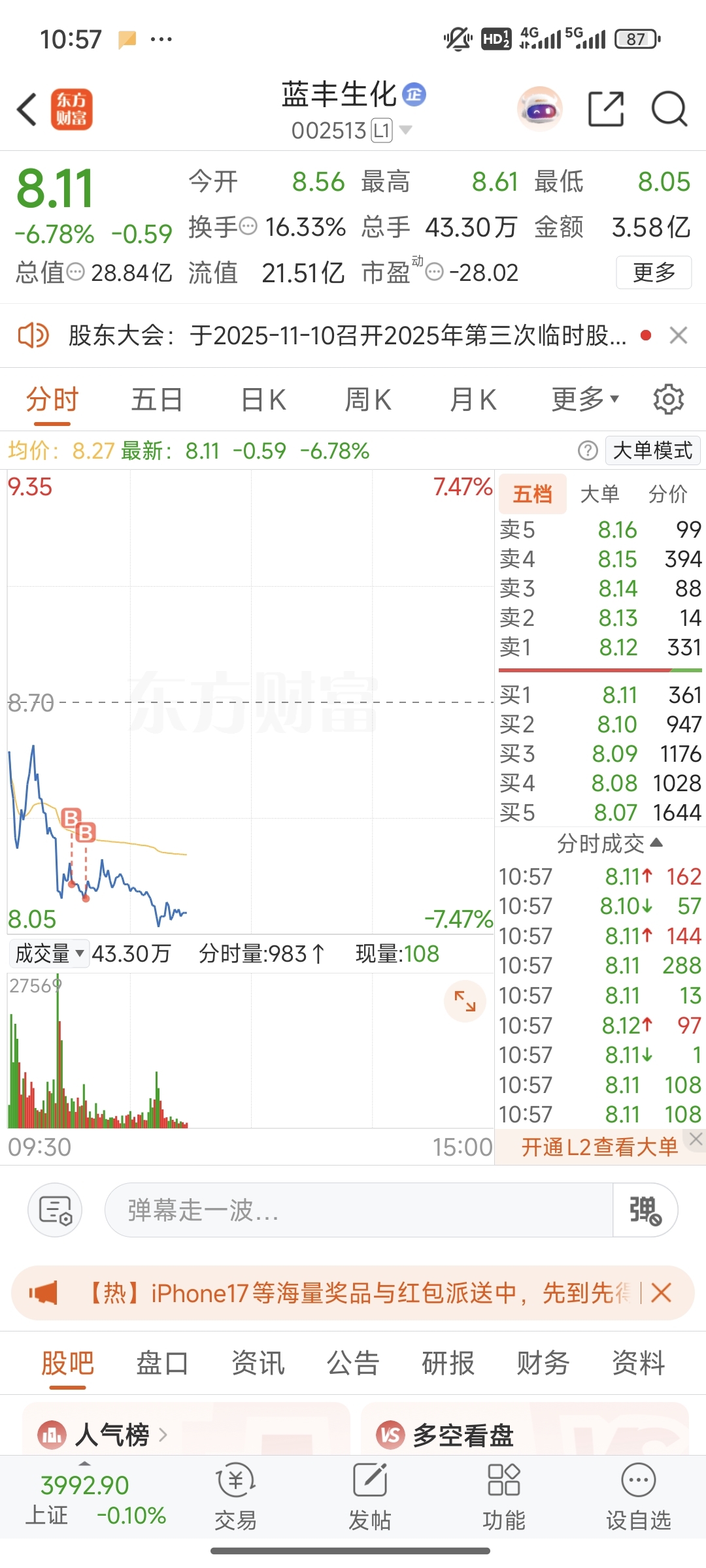 $蓝丰生化(SZ002513)$ 抄底抄在半山腰了#炒股日记#