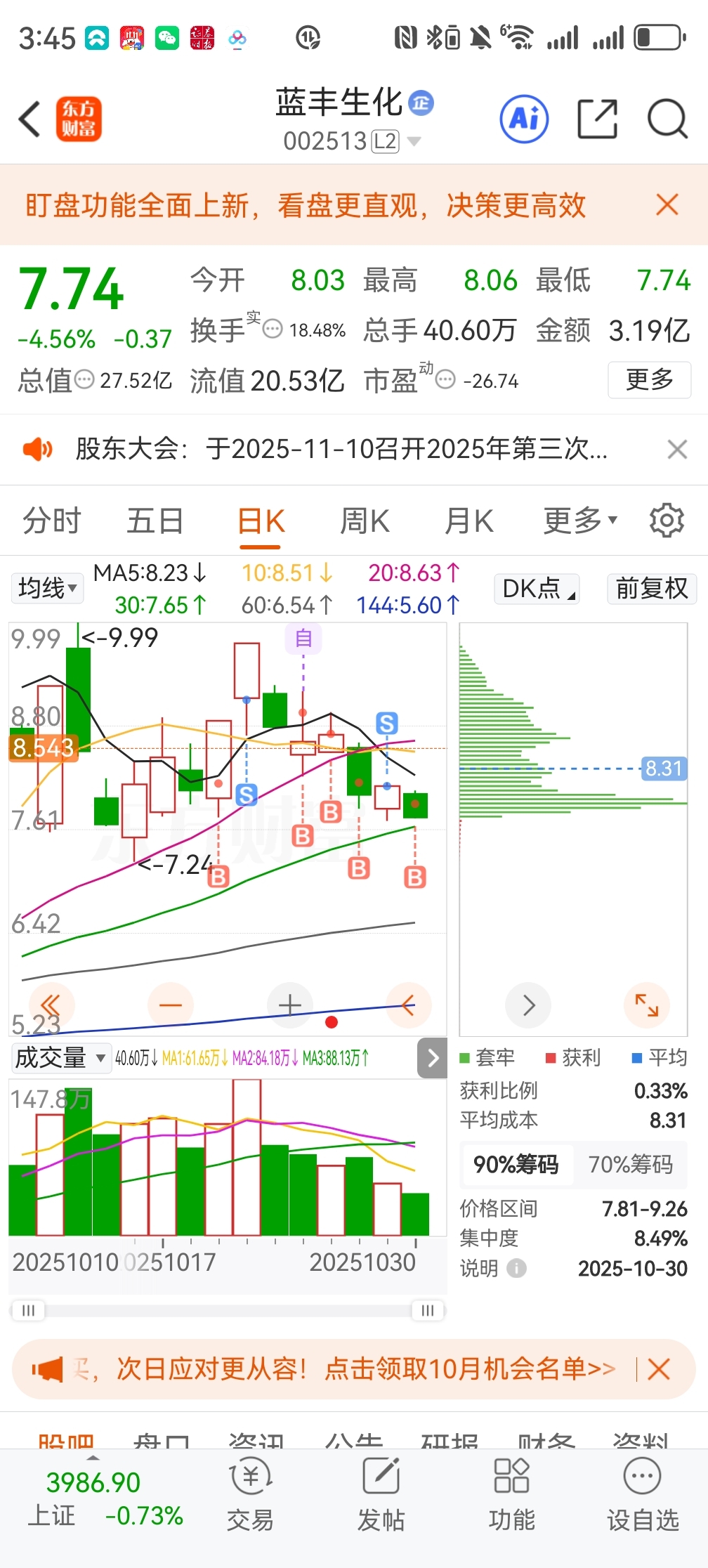 $蓝丰生化(SZ002513)$ 炒股一年了,唯一的心得,就是拿着就好了,总有一天会回本